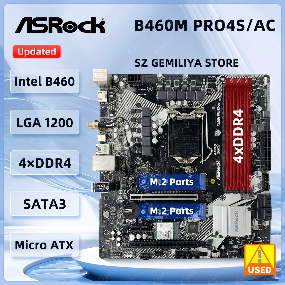 Comprar Placa base ASROCK B460M PRO4S/AC Intel B460 LGA 1200 compatible con i9-10900K i5-10400F i3-10100 i7-10700 i3-10105 cpu M.2 DDR4 128GB