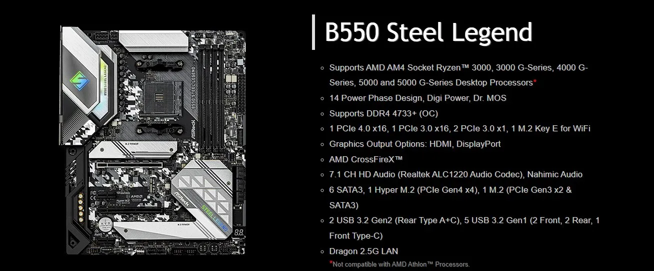 Comprar Placa base ASRock B550 Steel Legend compatible con Ryzen7 5800X3D R5 5600 CPU AMD AM4 Socket DDR4 4733MHz 128GB NVME M.2 HDMI PCIe 4,0