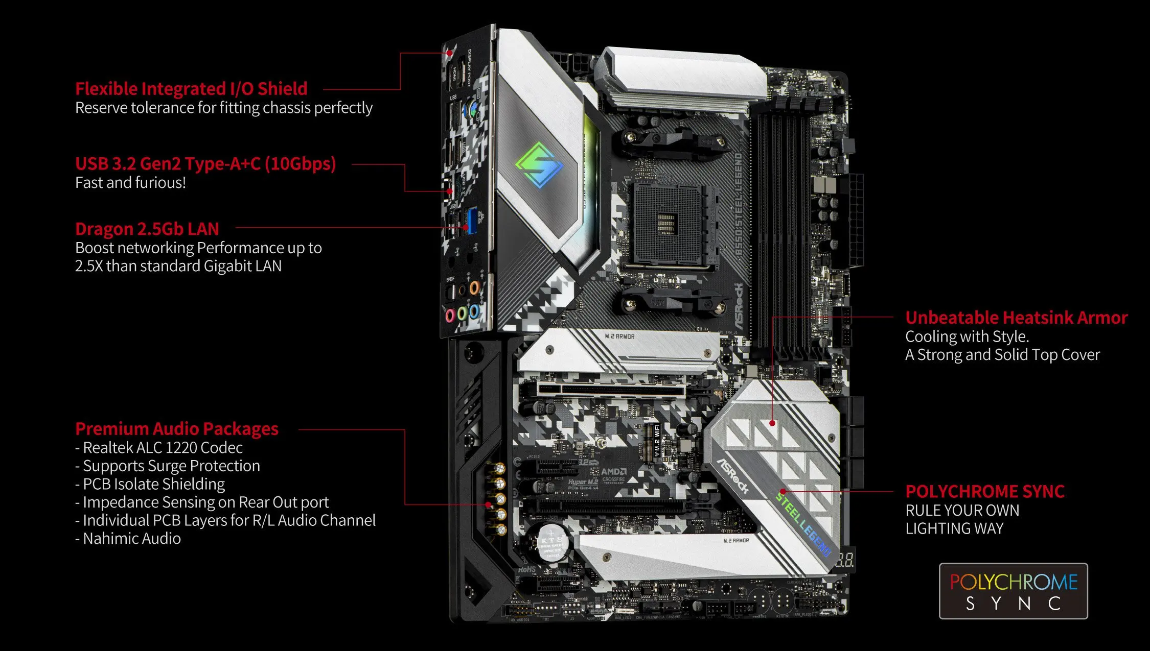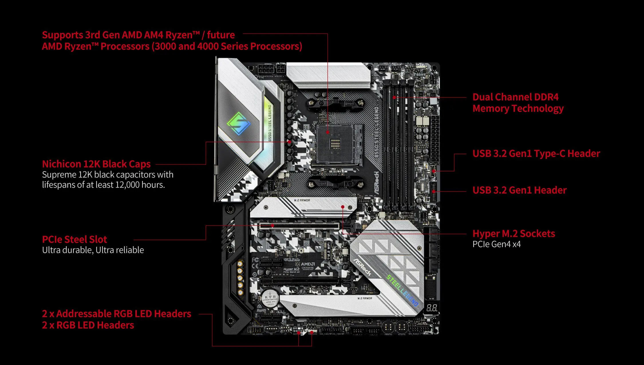 La placa base ASRock B550 Steel Legend admite Ryzen 7 5800X3D 5700X R5 5600 CPU AMD AM4 Socket DDR4 4733MHz 128GB NVME M.2 HDMI PCIe 4.0