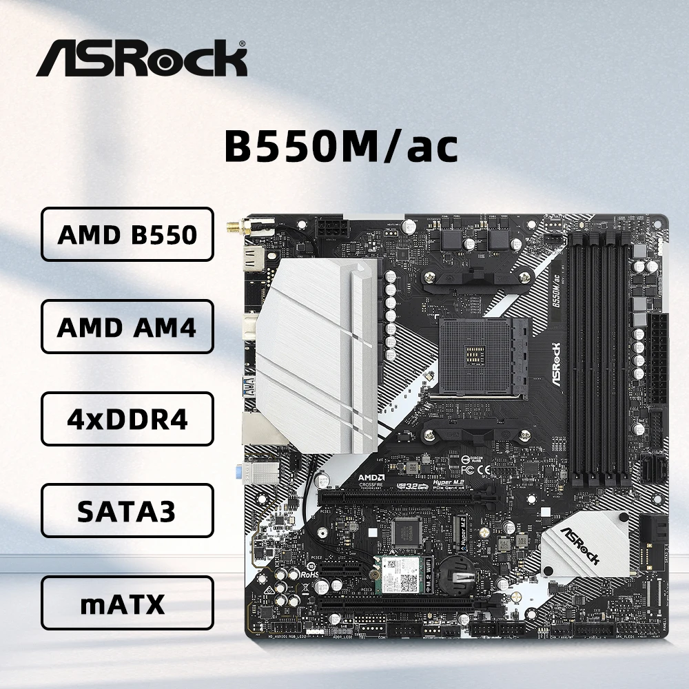 Comprar Placa base ASRock B550M/AC compatible con Ryzen 5 3600X 5600 5700X3D 5800X3D CPU 4xDDR4 4733MHz 128GB HDMI NVME M.2 mATX AM4