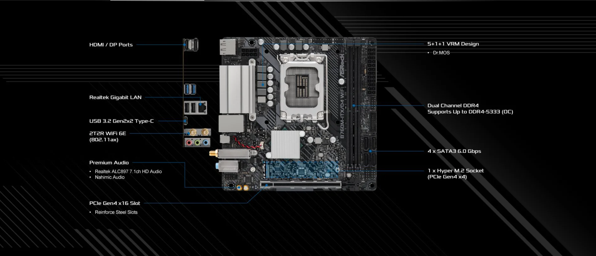 Comprar Placa base ASRock B760M-ITX/D4 WIFI Mini-ITX LGA1700 Intel B760 DDR4 64GB PCIe 4,0 compatible con i7-14700 i9-13900 i5-13400 i5-12600