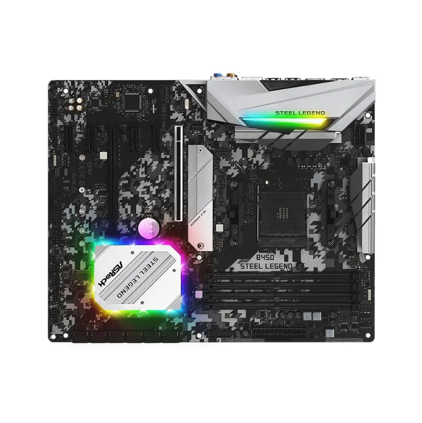 ASRock nueva placa base LEGEND de acero B450 compatible con Ryzen 5 5600 5600G R7 5700X3D 5800X CPU 4xDDR4 128GB HDMI M.2 ATX AM4 placa base