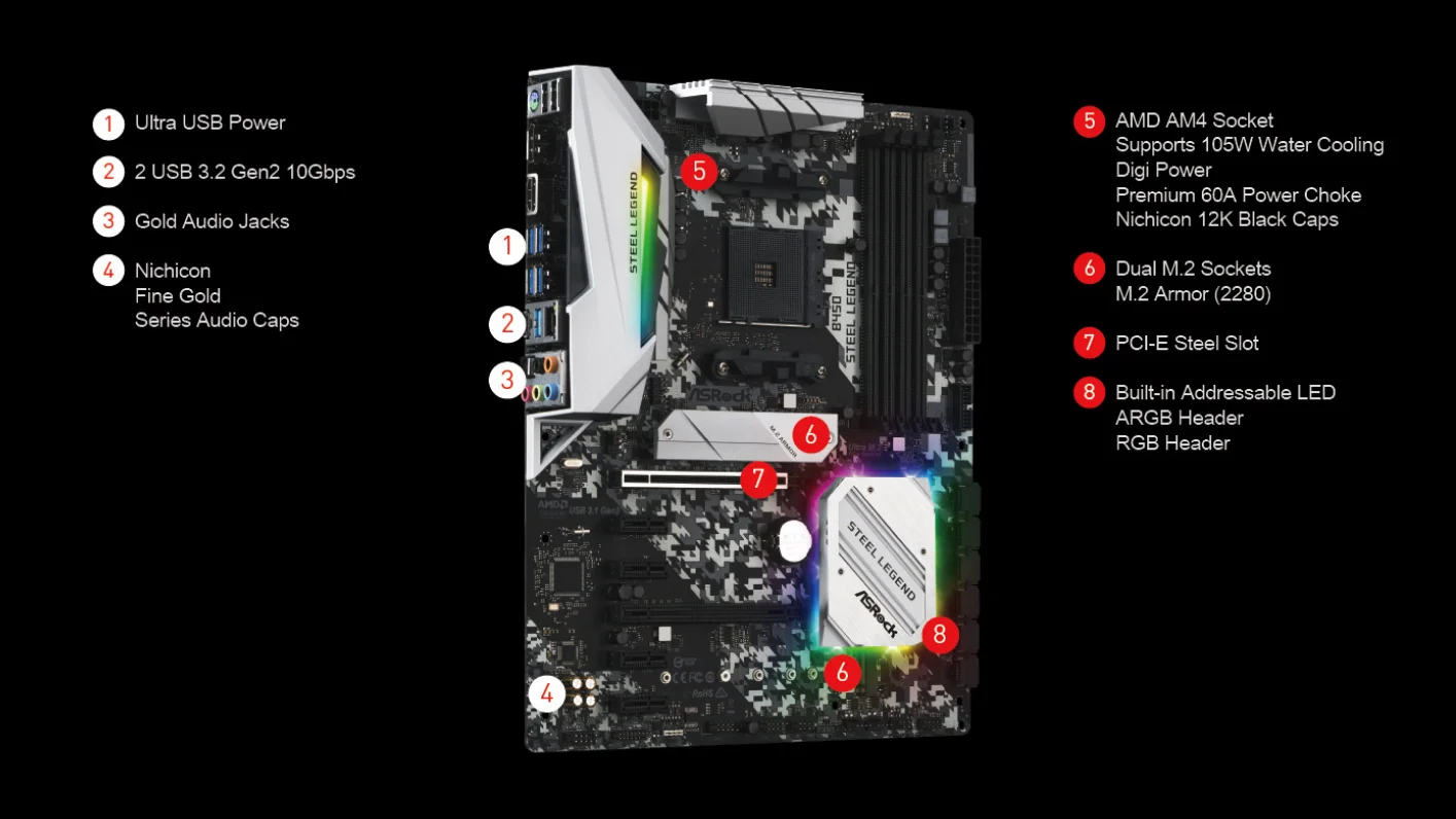 - Compatible con AMD AM4 Socket Ryzen™ Procesadores de escritorio de la serie 2000, 3000, 4000 G, 5000 y 5000 G