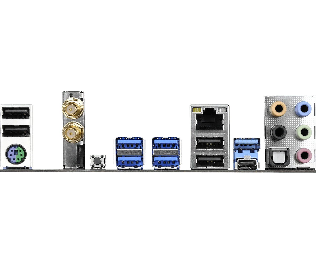 Other ports 1 x RJ45 network port, 1 x optical fiber port, 5 x audio port, 1 x CPU fan port, 1 x CPU option/pump fan port, 2 x Chassis fan port, 1 x Chassis option/pump fan port, 1 x front panel audio port, 2 x antenna port, 1 x PS/2 general purpose port