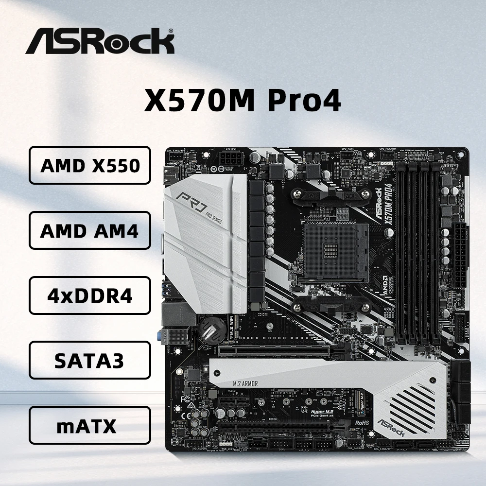 Comprar Placa base ASRock X570M Pro4 AMD X570 compatible con 5800X3D 5700x3D 5600G CPU 4xDDR4 4200MHz PCIe4.0 M.2 NVME mATX AM4