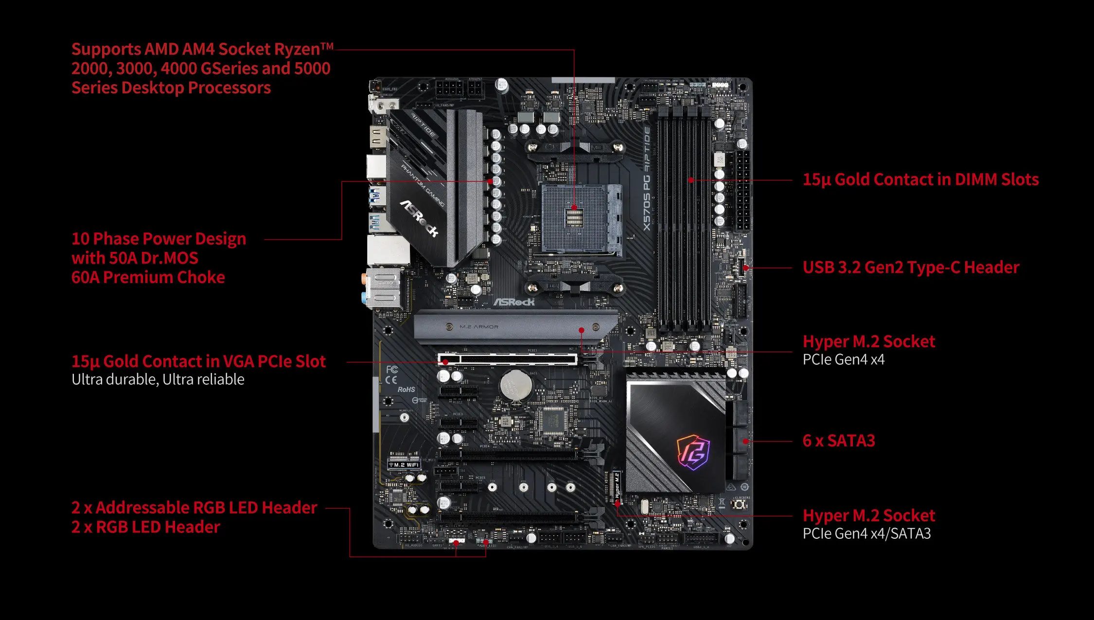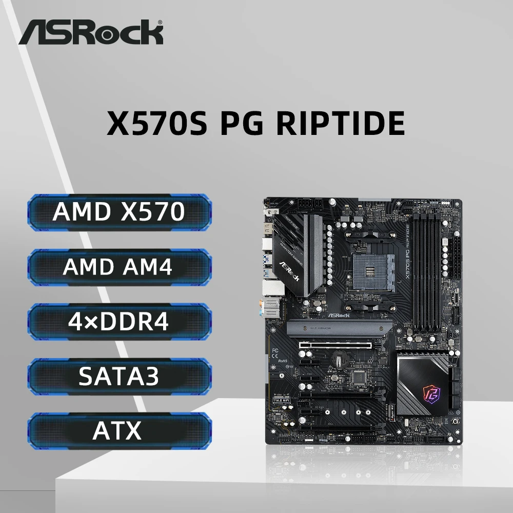 Comprar Placa base ASRock X570S PG RIPTIDE compatible con 3600X 5600G 5700X3D 5800x3D CPU 4xDDR4 5000MHz M.2 NVME PCIe 4,0 ATX AM4
