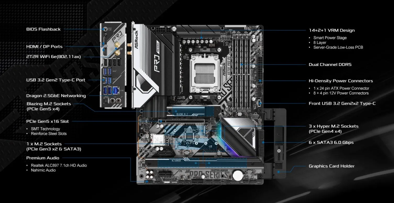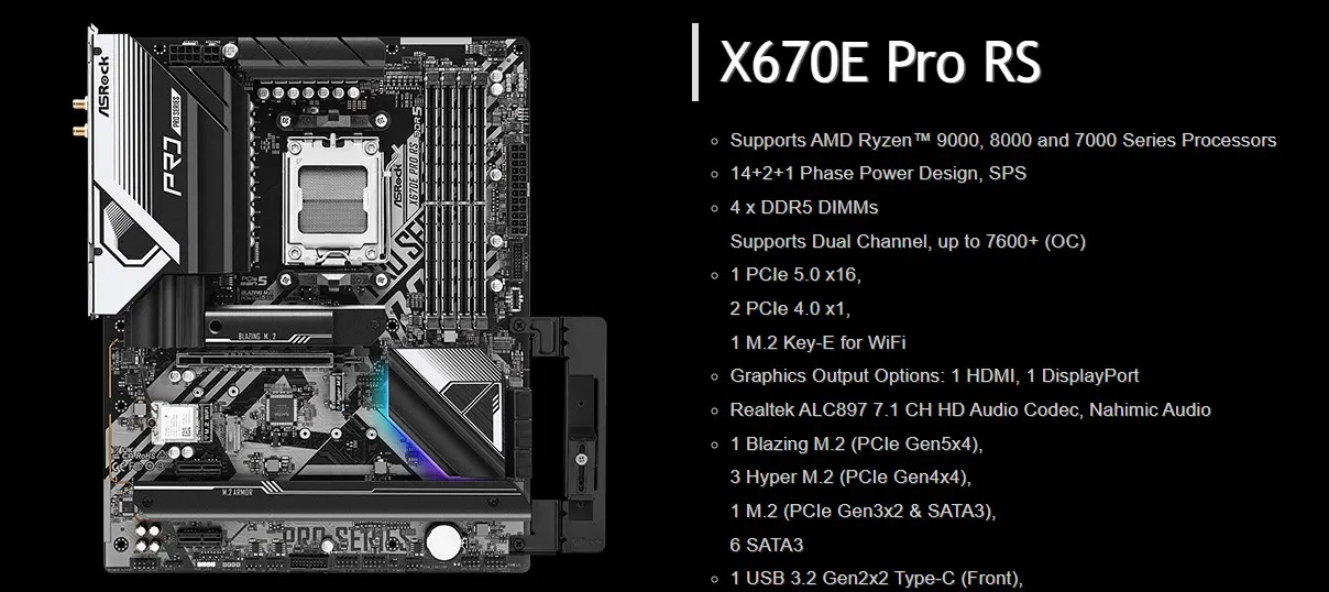 Placa base ASRock X670E Pro RS AMD X670 compatible con 7900X 7800X3D 7700 7600X 7500F CPU DDR5 7800MHz M.2 NVME PCIe 5.0 AM5 placa base