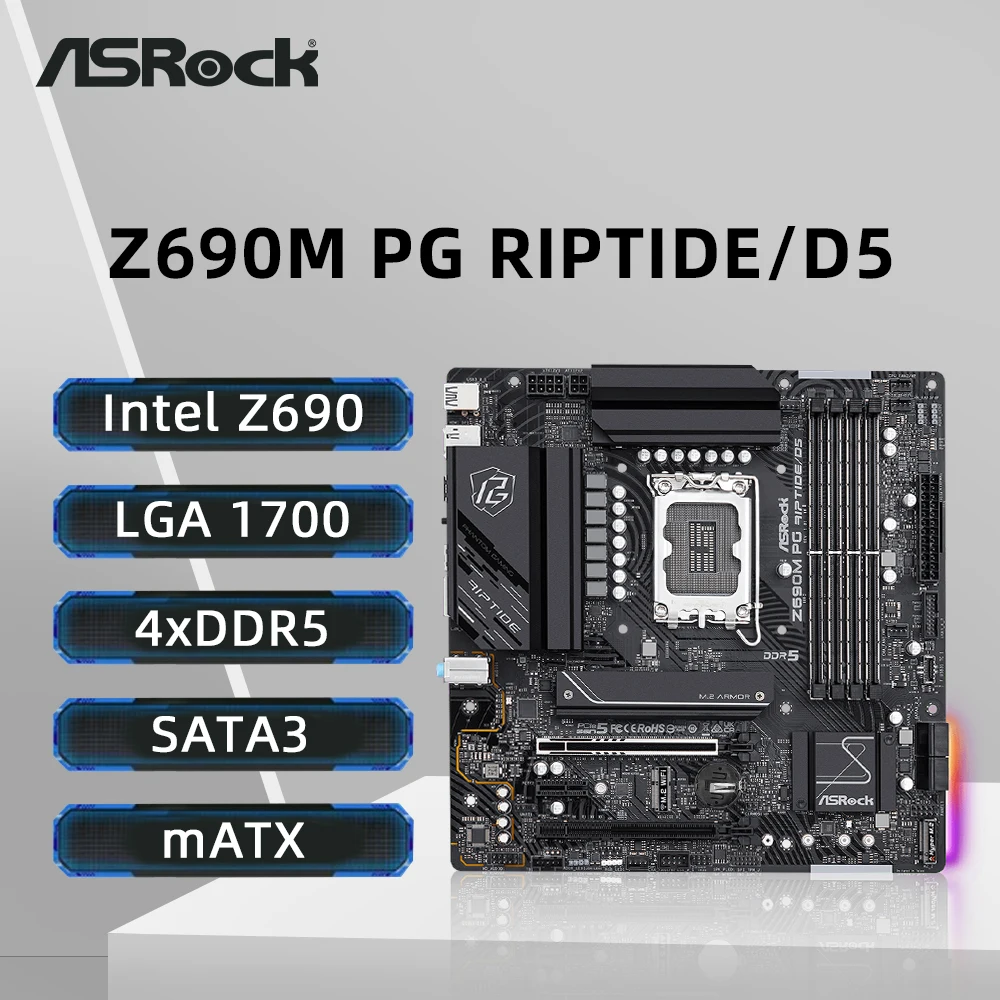Comprar Placa base ASRock Z690M PG RIPTIDE/D5 compatible con i9-14900K i7-12700K i5-12400F CPU LGA1700 4xDDR5 USB3.2 Gen2 M.2 PCIe 5,0 mATX