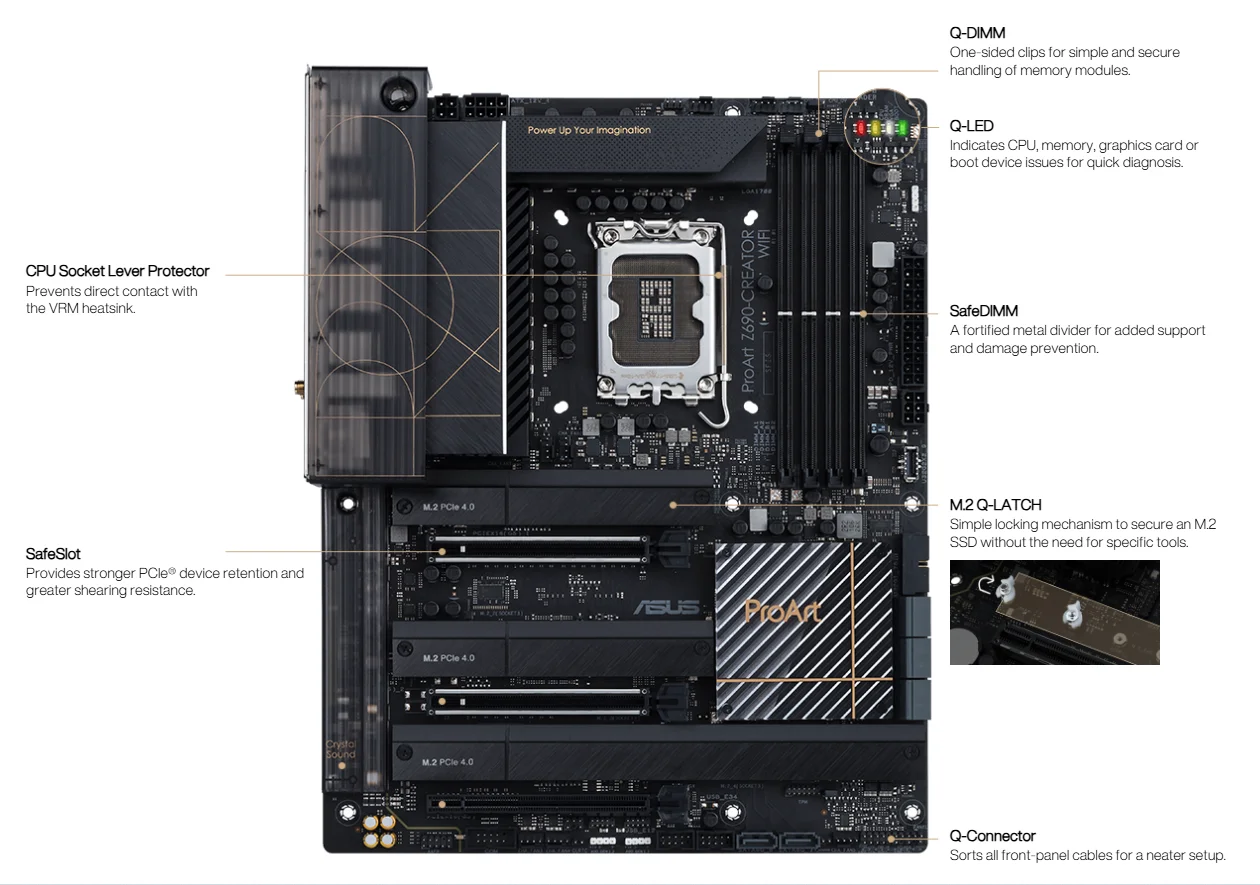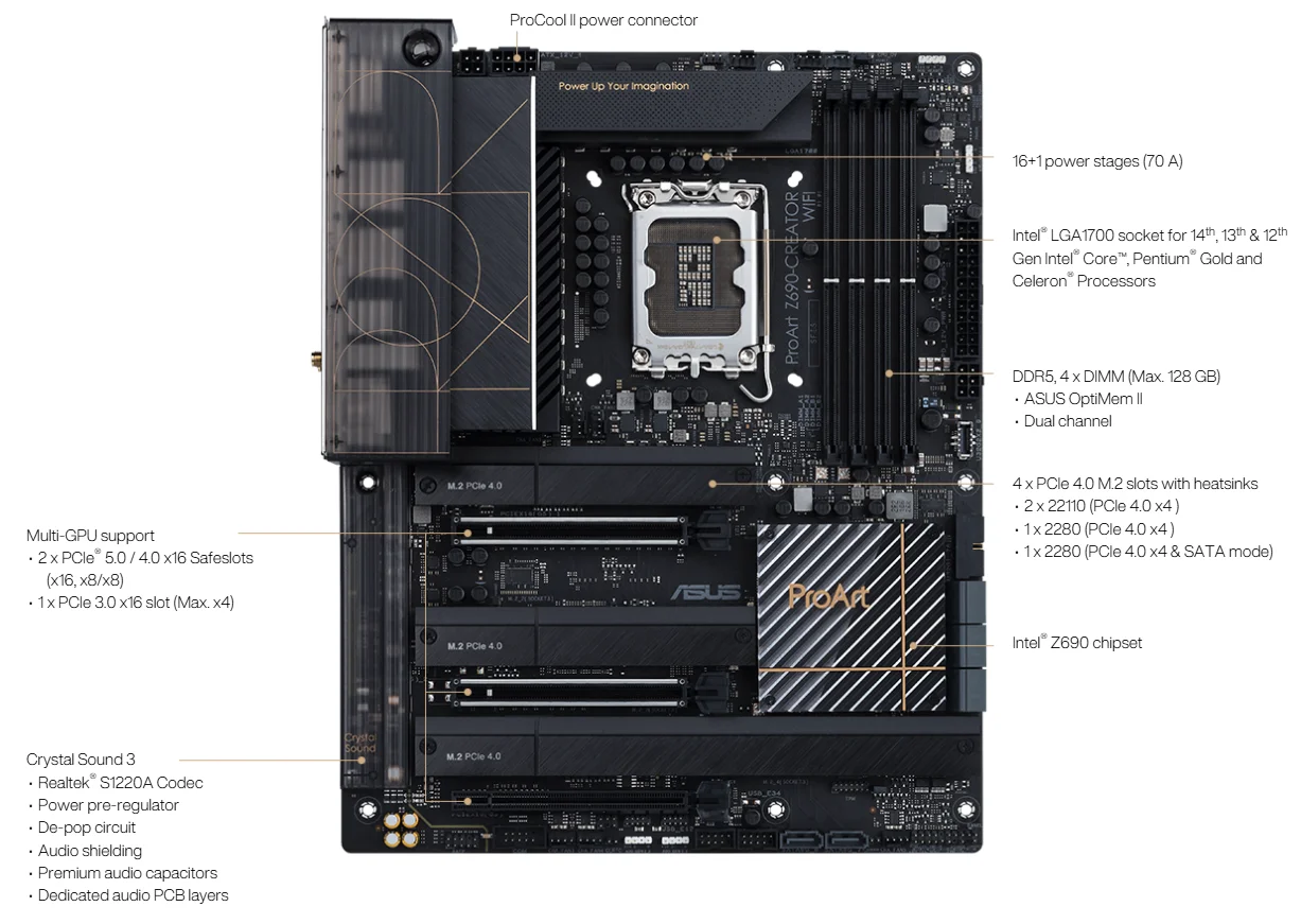 Comprar Placa base ASUS PROART Z690-CREATOR WIFI compatible con i9-14900K I5-12400F CPU LGA1700 4xDDR5 DIMM USB3.2 Gen2 M.2 PCIe 5,0 HDMI ATX