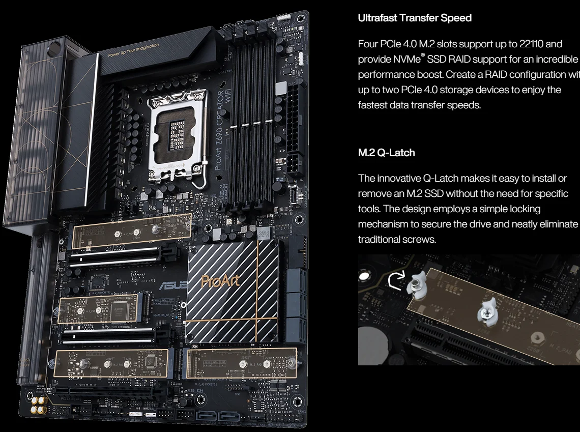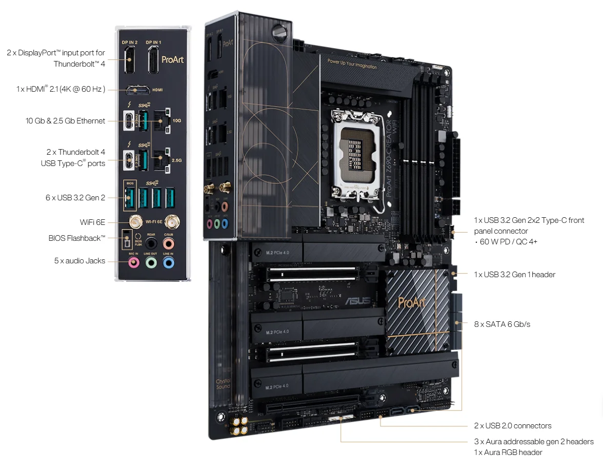 Placa base WIFI ASUS PROART Z690-CREATOR compatible con CPU i9-14900K I5-12400F LGA1700 4xDDR5 DIMM USB3.2 Gen2 M.2 PCIe 5.0 HDMI ATX