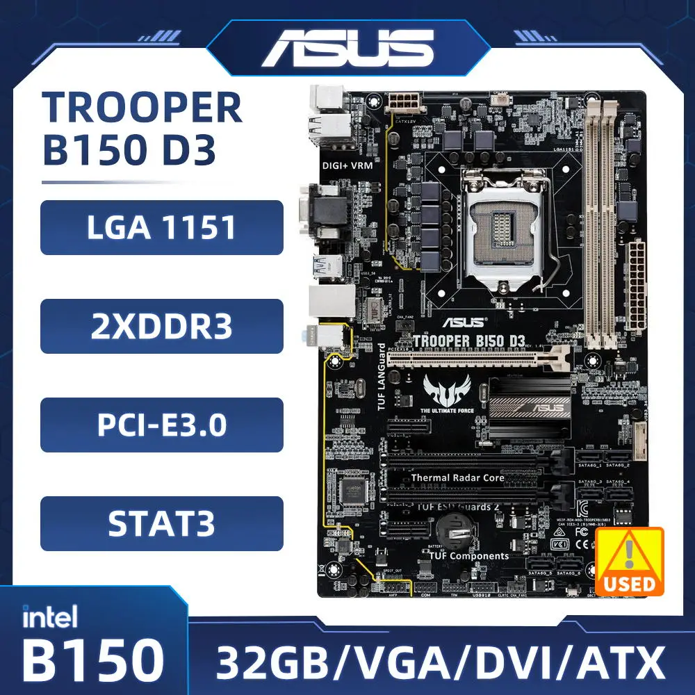 Comprar Placa base ASUS TROOPER B150 D3 Intel B150 LGA 1150 DDR3 32GB ATX compatible con CPU Core i3-6300 i7-6700 6100 6500 7500 7700 G4620