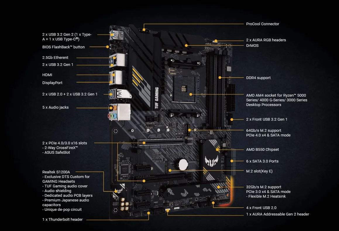 Placa base ASUS TUF GAMING B550-PLUS compatible con Ryzen 5 5600 R7 5700X3D CPU AMD B550 DDR4 HDMI Dual SATA 6 USB 3.2 M.2 NVME PCIe 4.0