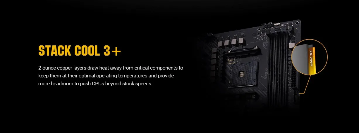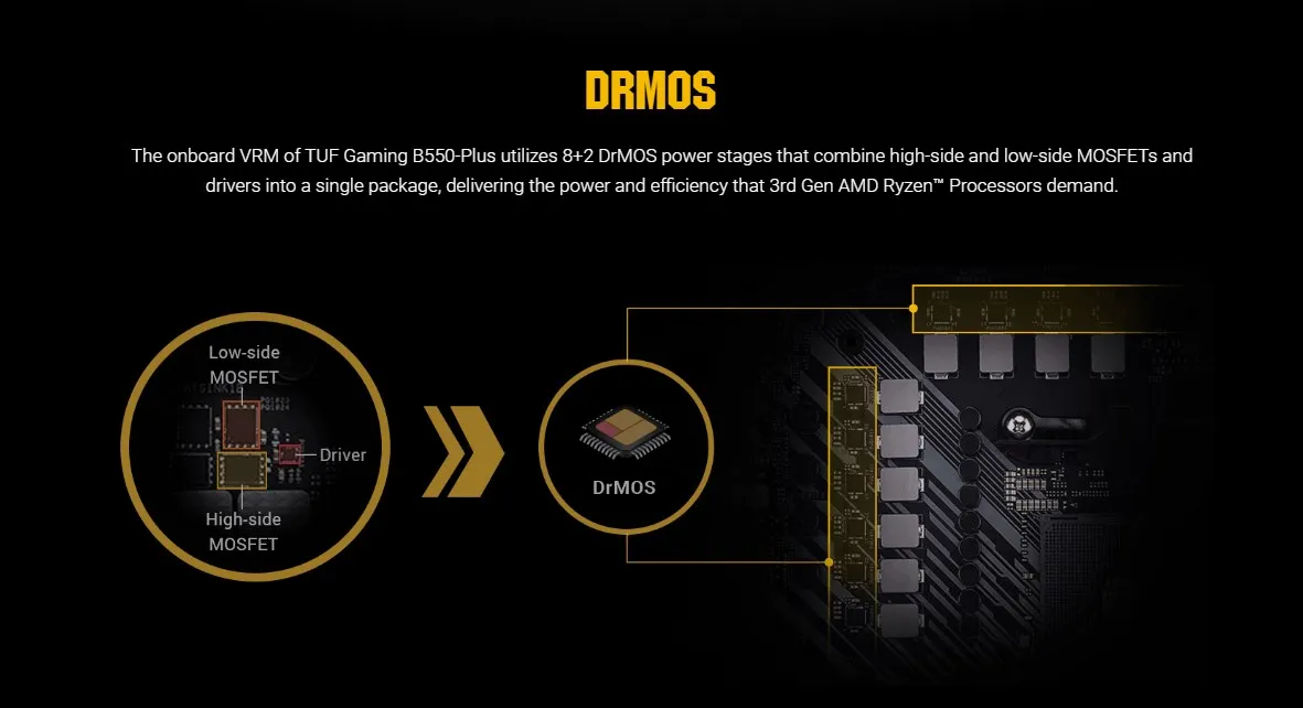 Solución de energía mejorada:8+2 etapas de potencia DrMOS, enchufes ProCool, componentes TUF de grado militar y Digi+ VRM para máxima durabilidad