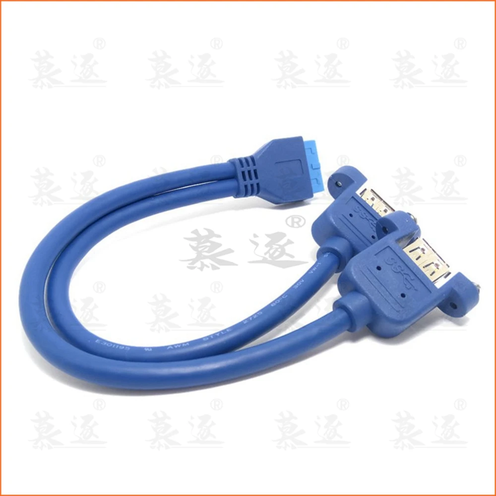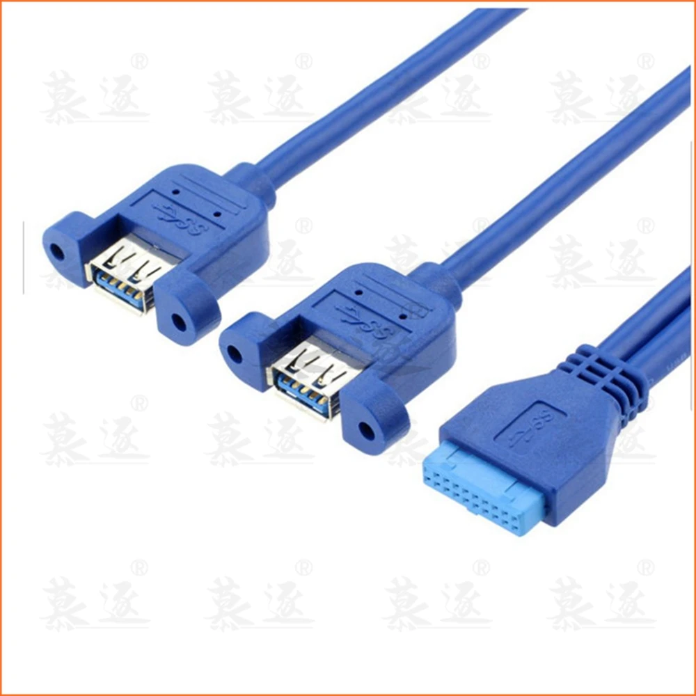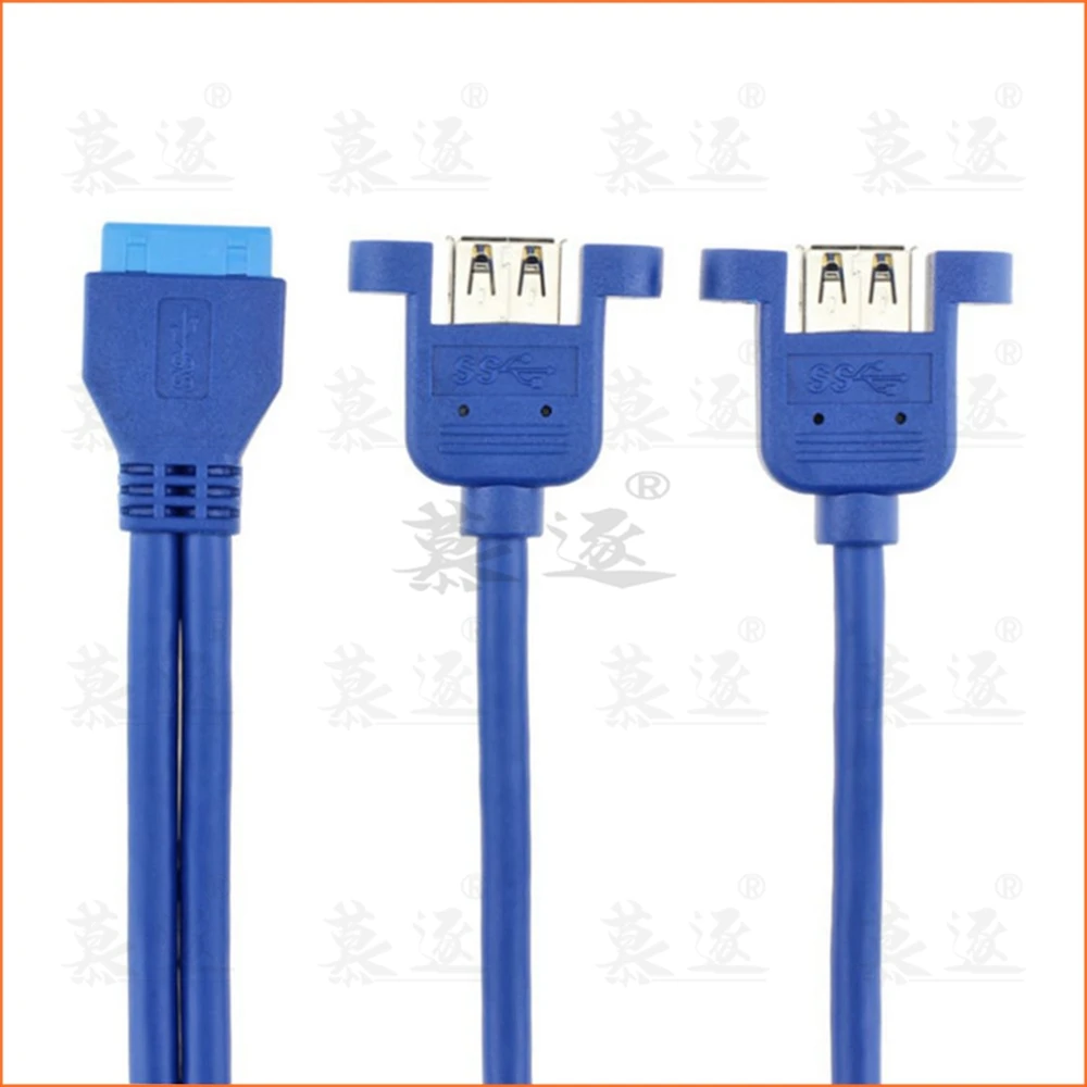 Comprar Placa base azul USB 0,5 de 3,0 m, 20 pines A puertos duales USB 3,0, cable de conector hembra de 50cm con tornillo de montaje tipo 20CM 50CM