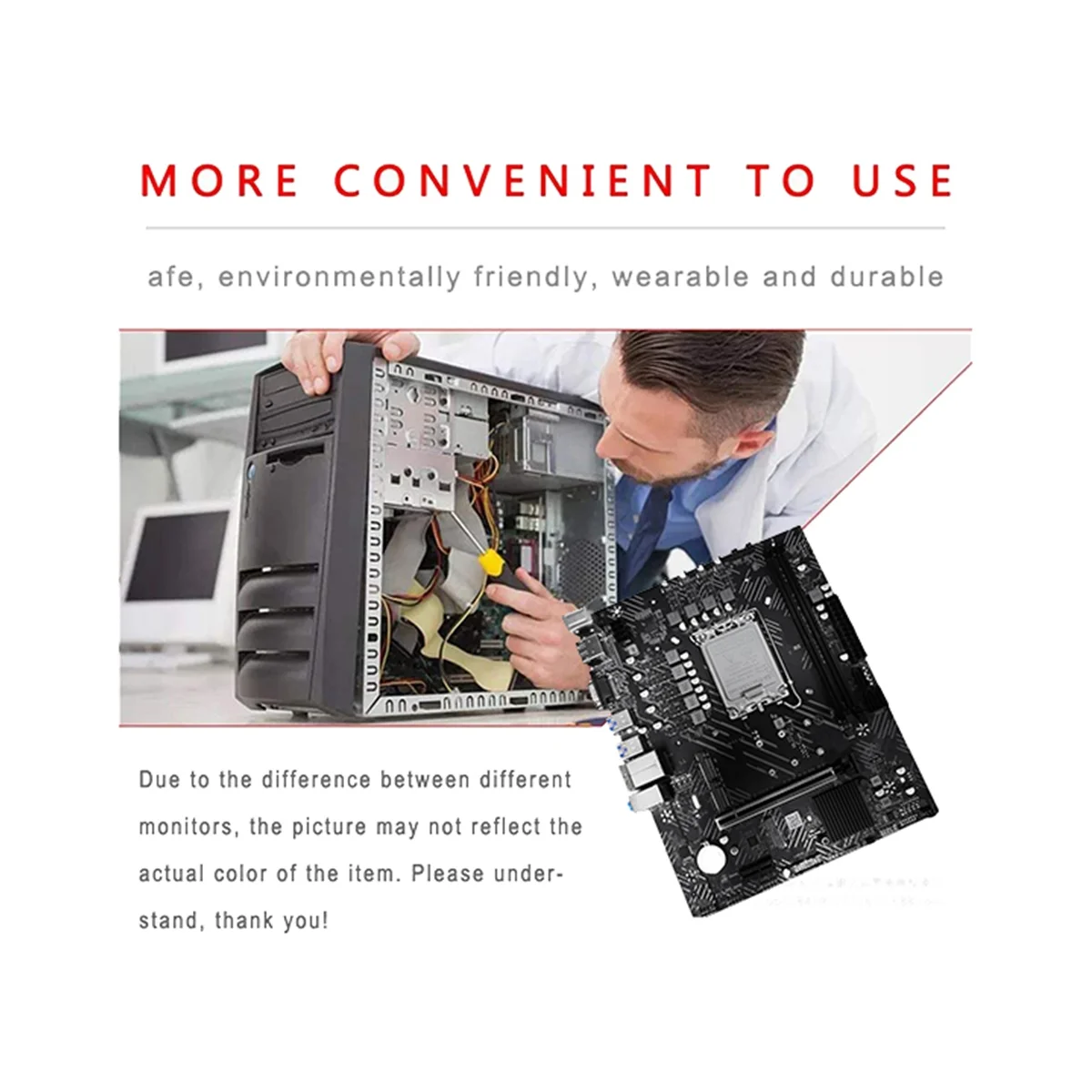 Características: 1,Extended Inderface: 2 x M2 22110 NVME PCIEX4 4,0; 1 x VGA + -compatible + DP; 4 x USB3.2 Gen2x1; 2x USB2.0; 1xInterfaz de red 2, admite M2 NVME integrado con ranuras de expansión: 1 xPCI-5,0x16; 1 xPCI- 3.0X4 3, ranura de memoria DDR4 de doble canal compatible con DDR4 de doble canal 3200/2933/2666/2400MHz 4, diseñado para las capacidades mejoradas de alto rendimiento que necesita para su servidor. 5, La placa base B660 D4 admite el 12 ° DE DDR4. Capacidad de memoria de hasta 64GB, tipo de memoria: 2xDDR4, juegos a escala especiales fáciles de manejar: película a escala, modelado y renderizado. Especificaciones: Nombre del producto: placa base de PC de escritorio Material: PCB Color: Negro Modelo: B660 Chipset: B660 Chipset CPU: LGA1700, compatible con CPU de 12/13 generación Memoria: 2 memorias DDR4, soporte de frecuencia 3200/2933/2266/2400MHz, soporte máximo 64GB Interfaz de pantalla: -compatible/DP/VGA : 3 interfaces SATA3.0, 2 interfaces M.2, 1 x interfaz WIFI M.2 Interfaz integrada: 1 x pin F _ USB 1 x pin USB3.0 1 x pin F _ AUDIO 1 x pin J _ SPK 1 x pin JCMOS inicial BIOS 1 x pin CPU _ FAN 2 x pin CSYSFAN interfaz externa: interfaz USB: 2 x USB2.0, 4 x USB3.0 Teclado/ratón: Admite 1 interfaz de teclado y ratón PS/2 AUDIO:1 interfaz de audio estándar F _ AUDIO tres en uno interfaz de audio de alta fidelidad Bus de expansión: 1 pin, 1 interfaz PCIE _ 16X y 1 interfaz PCIE X1 Interfaz de alimentación: 8Pin ATX12V, 24Pin ATXPWR Tamaño del producto: 24x19cm Diferentes lotes de producción, La apariencia o la interfaz será ligeramente diferente, lo que no afectará el uso Contenido del paquete: 1 x placa base B660 1 x cable SATA 1 x grasa térmica Solo el contenido del paquete anterior, otros productos no están incluidos. Nota: El reflejo de la luz y las diferentes pantallas pueden hacer que el color del elemento en la imagen sea un poco diferente del real. El error de medición permitido es +/- 1-3cm.