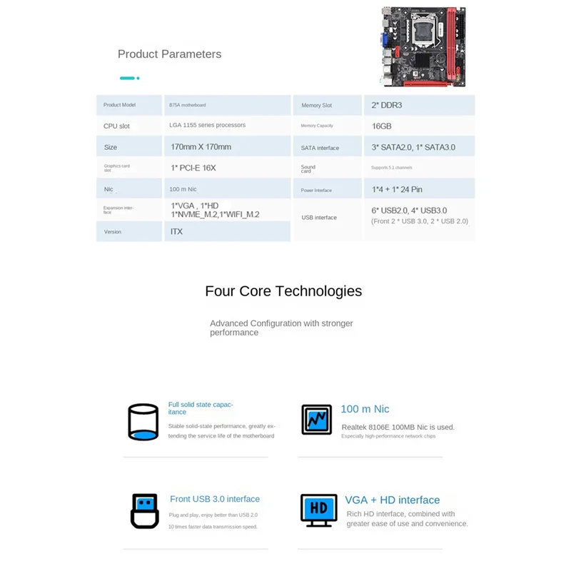Comprar Placa base B75 (B75A) LGA1155 + CPU I3 2120 + Cable SATA compatible con ranura 2XDDR3 NVME M.2 + WIFI M.2 USB3.0 SATA3.0