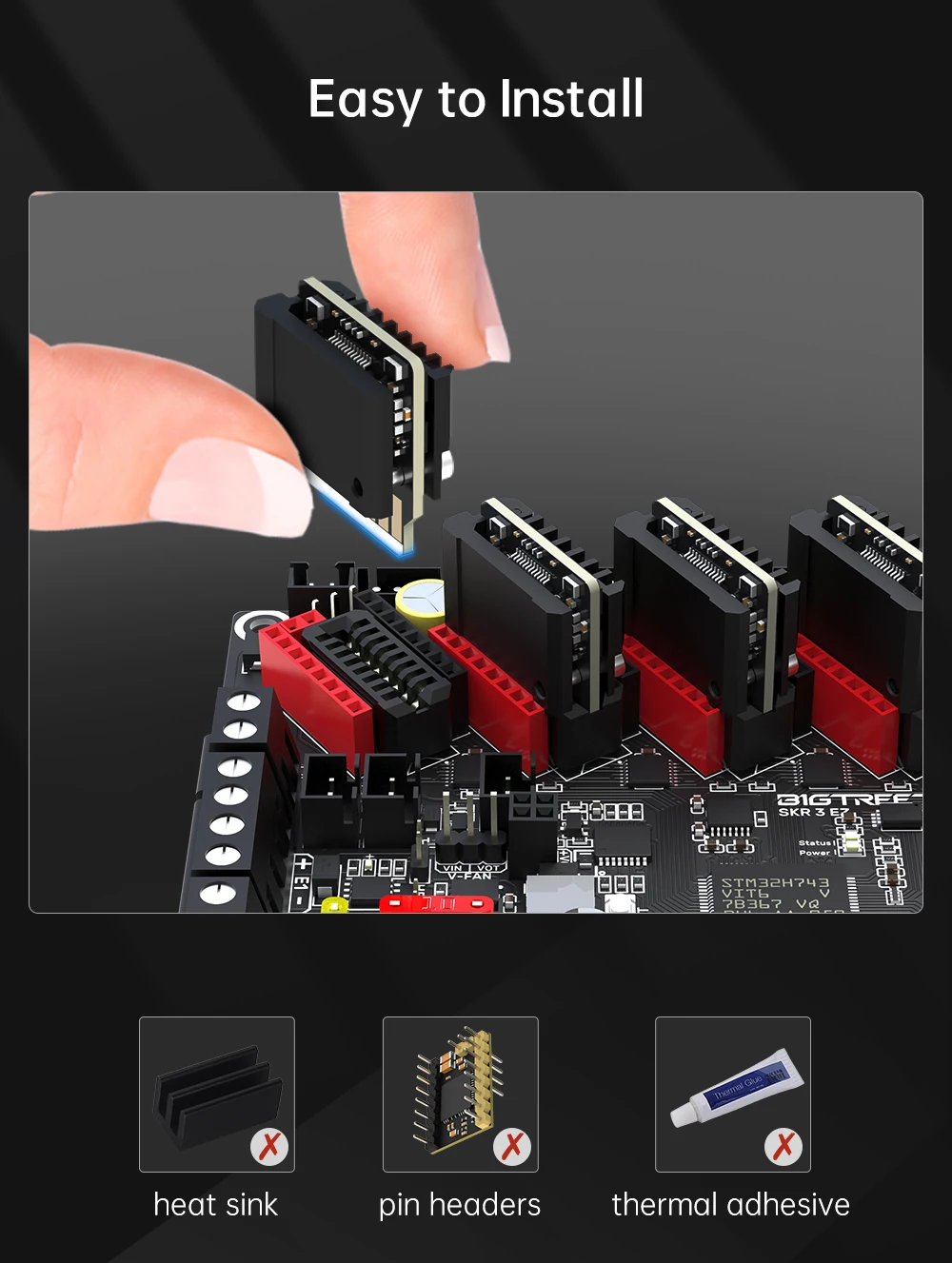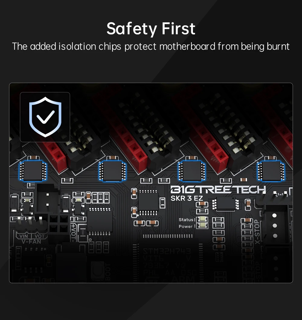 Diferentes medios de conexión.En SKR 3, puede utilizar el conector del controlador para utilizar nuestro controlador EZ de nuevo diseño.Sin embargo, SKR 3 EZ se puede insertar directamente con el controlador EZ, sin necesidad de convertidor.El diseño del controlador EZ podría proteger muy bien sus dedos de los cabezales de clavijas afilados.Además, este fantástico diseño de enlace protector anti-enchufe podría ayudarle a proteger su placa base.Porque hemos recibido los comentarios de que algunos clientes quemaron el controlador, la placa base e incluso incendieron en algunas condiciones graves debido a una inserción incorrecta.Por eso creamos esta tecnología de controlador mejorada, brindándole una experiencia de usuario segura y placentera.