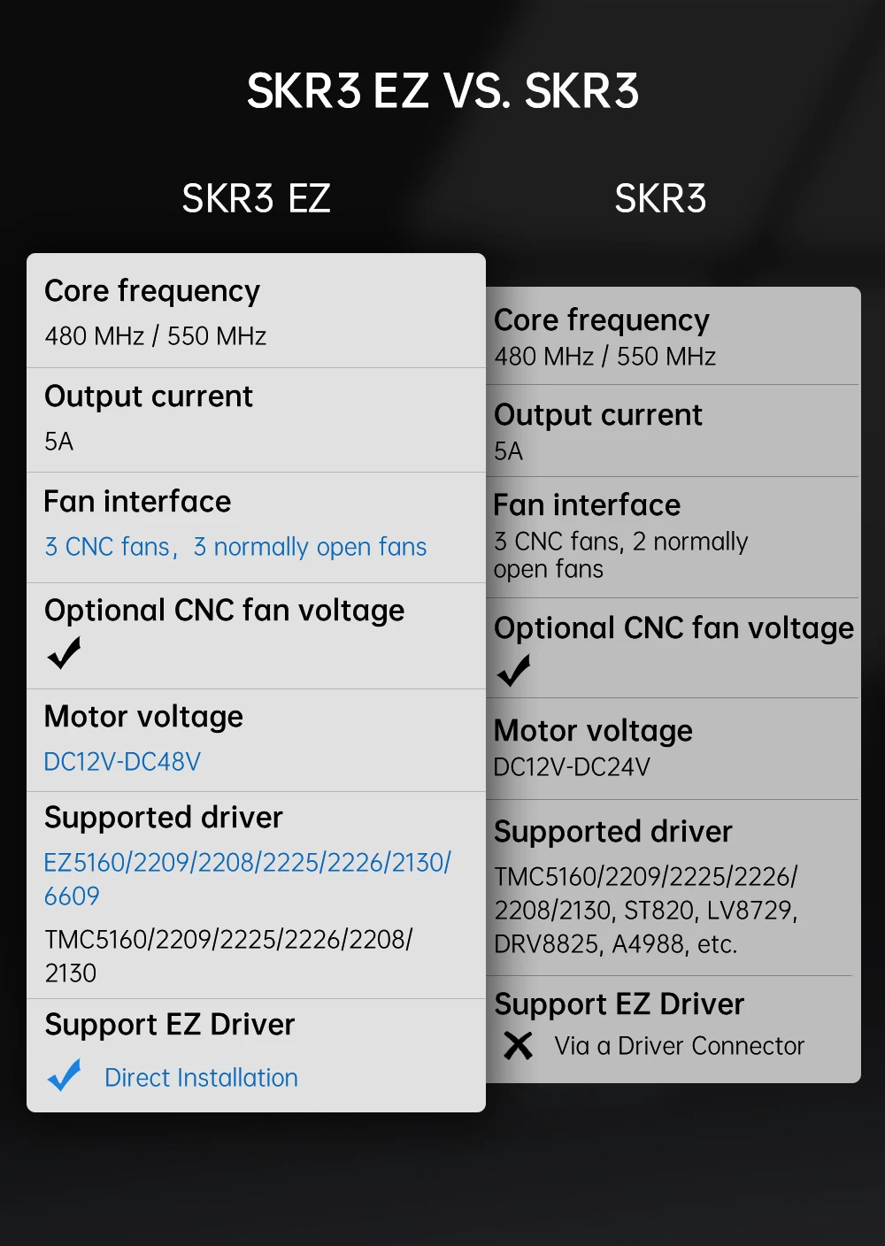 Las diferencias entre la placa base SKR 3 y la placa base SKR 3 EZ