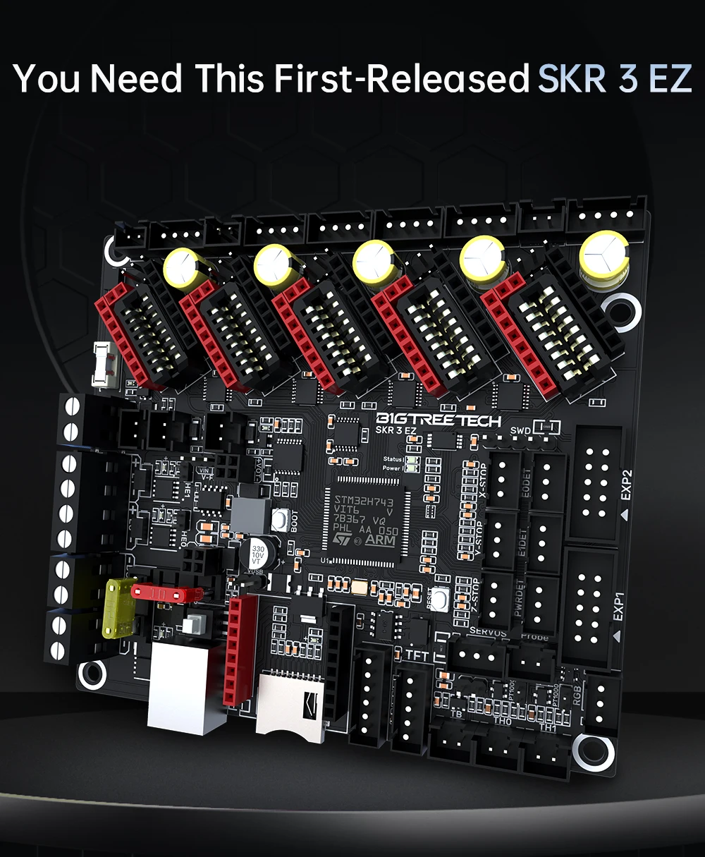La placa base BIGTREETECH SKR 3 EZ V1.0 es una placa base para impresora 3D de 32 bits actualizada por el equipo de Shenzhen Biqu Technology Co., Ltd. para nuestros controladores de la serie EZ basados en SKR 3.Es compatible tanto con el controlador de la serie EZ como con la serie de controladores TMC.