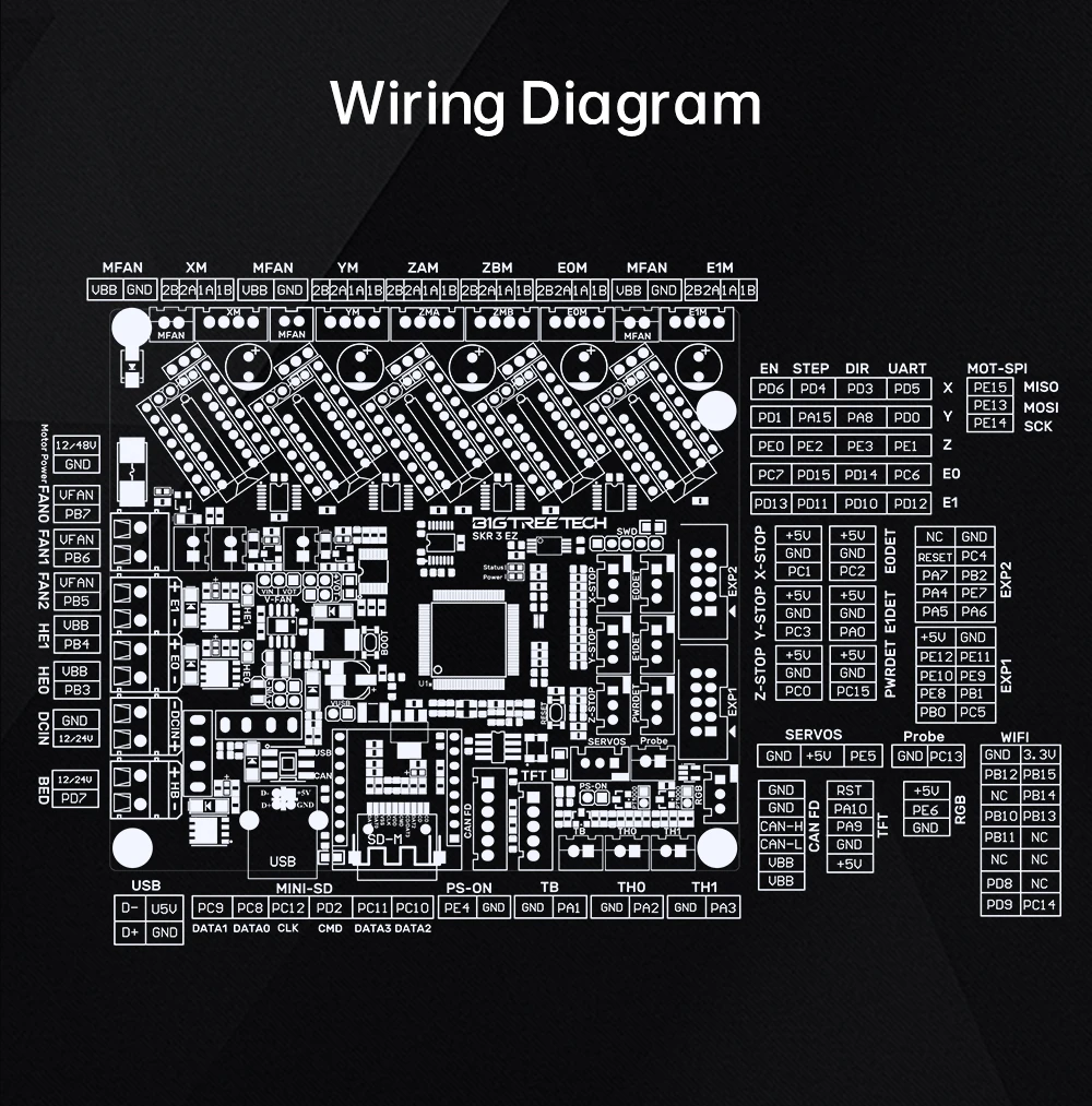 Apto para bricolaje.Nos reservamos el botón BOOT0 para considerar ingresar fácilmente al modo DFU para actualizar el firmware.Además, el termistor mejorado admite PT1000, sin necesidad de un módulo externo.El puerto modular universal WIFI (ESP12S, ESP-07, ESP32) permite utilizar el firmware RRF cuando realiza impresiones de bricolaje.