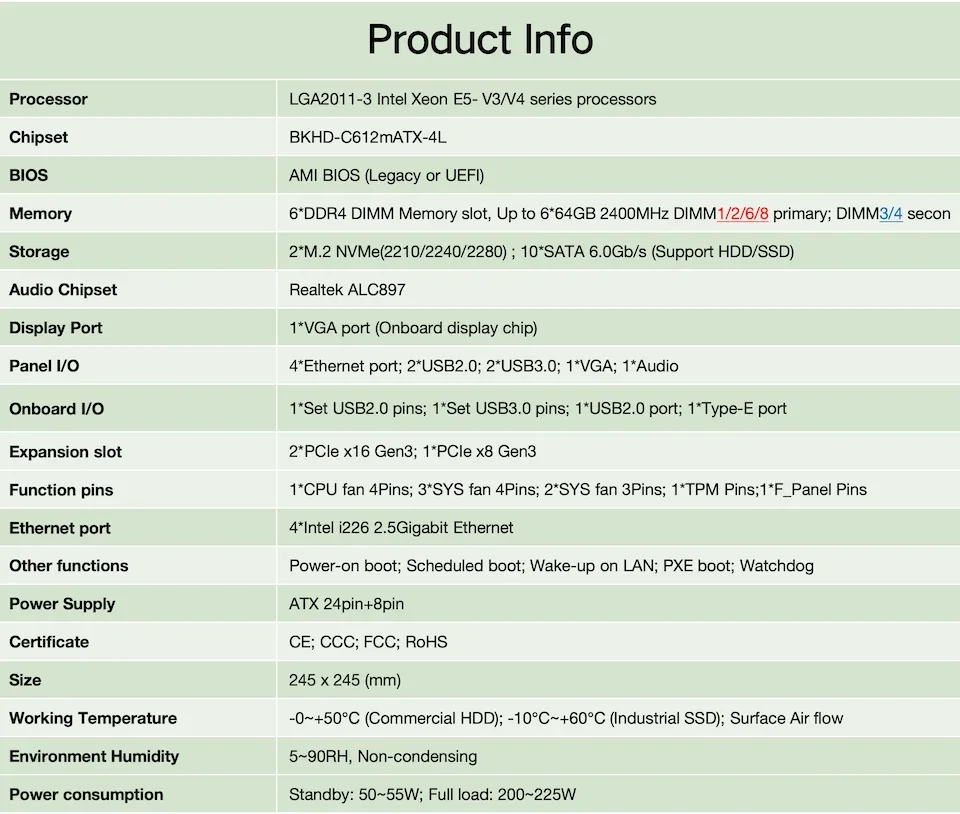 Comprar Placa base BKHD 2011-mATX adecuada para servidores, cortafuegos, enrutadores de máquinas virtuales, 4x2,5 GE, 6x DDR4, hasta 384G, 10x SATA Raid