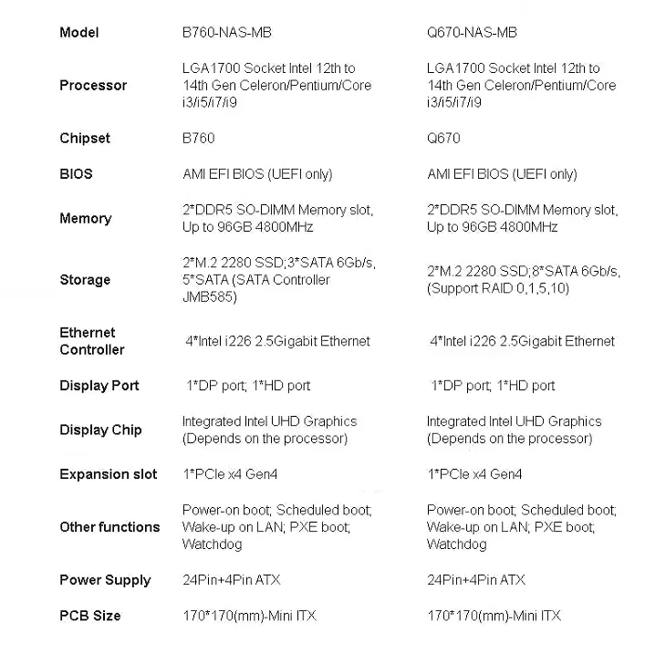 Comprar Placa base BKHD mITX Q670 LGA1700 4x2,5 GbE DDR5 8xSATA PICe x4 Raid para servidor de cortafuegos NAS Compatible con TrueNAS OMV ESXi Vpro