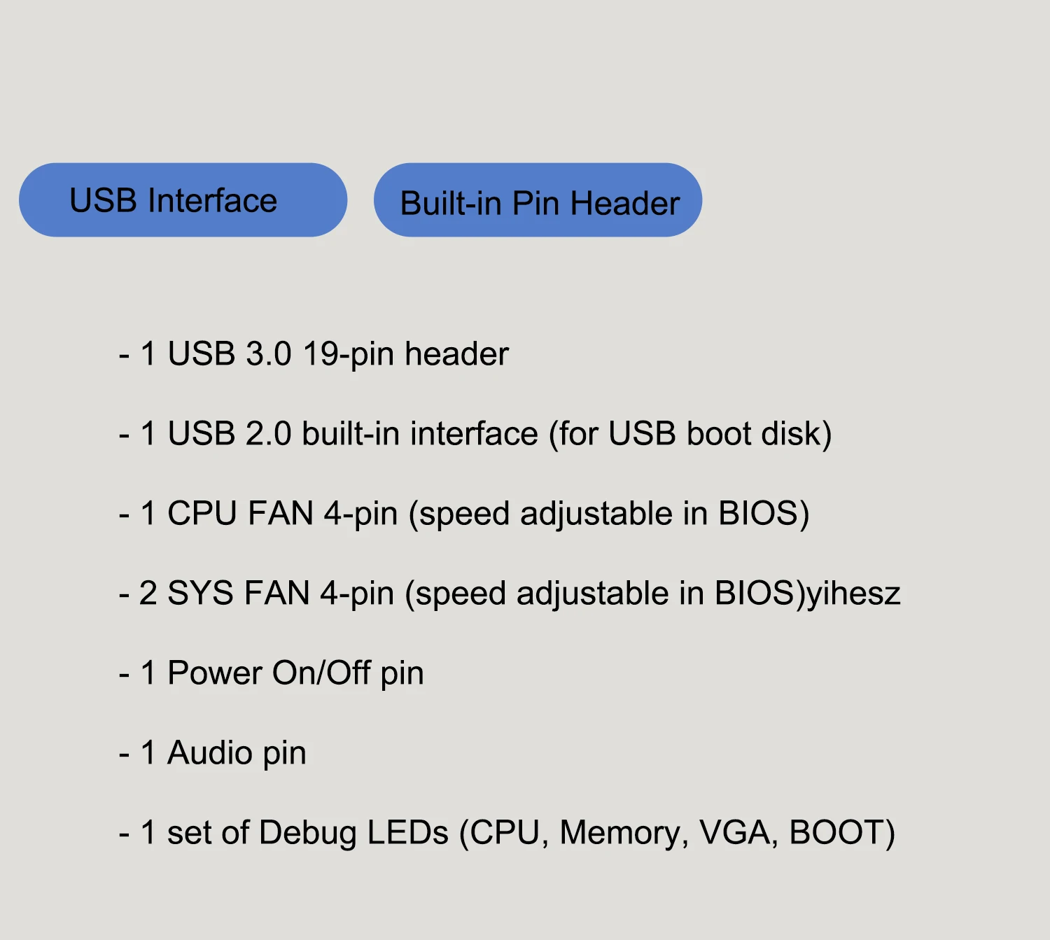- 1 juego de LED de depuración (CPU, memoria, VGA, BOOT) yihesz
