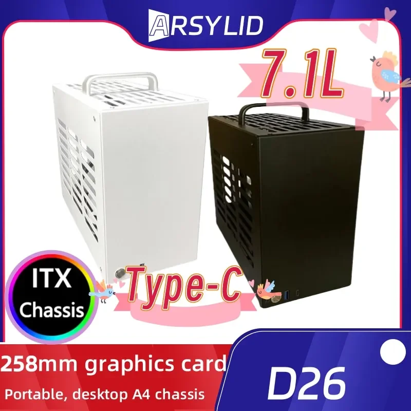 Comprar Placa base de chasis D26 A4, Mini ordenador de juego ITX, soporte de radiador de 50mm, tarjeta gráfica de 258mm, funda I7 de 17x19cm