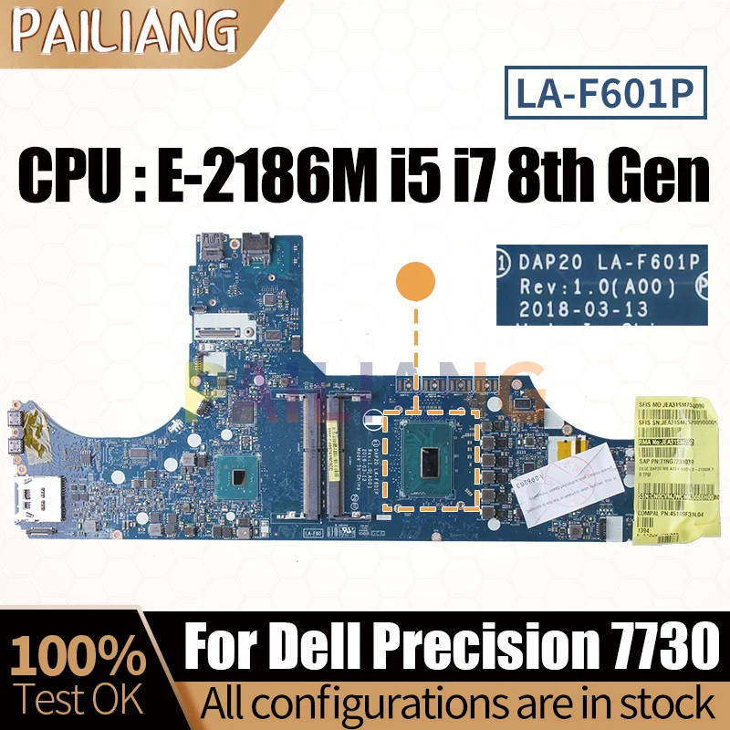 Comprar Placa base completamente probada para ordenador portátil Dell Precision 7730, placa base para portátil LA-F601P 0RFDCG 0CVMJW 0V490F E-2186M i5 i7 de 8ª generación