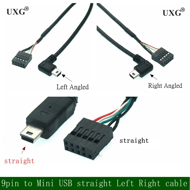 Comprar Placa base de computadora 9 pines a Mini USB Cable de datos de carga DuPont 2,54 mm DuPont USB a MINI USB blindado 90 grados derecho