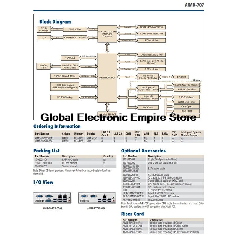 AIMB-707 AIMB-707VG-00A1 para placa base de Control Industrial Advantech ATX Chip H420E 4 i9CPU núcleo de soporte de 10a generación