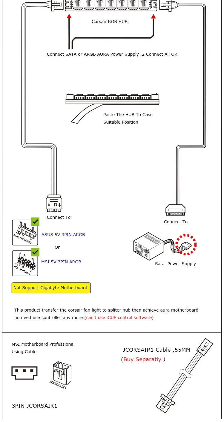 2.This product transfer the corsair fan light to spliter hub then achieve aura motherboard