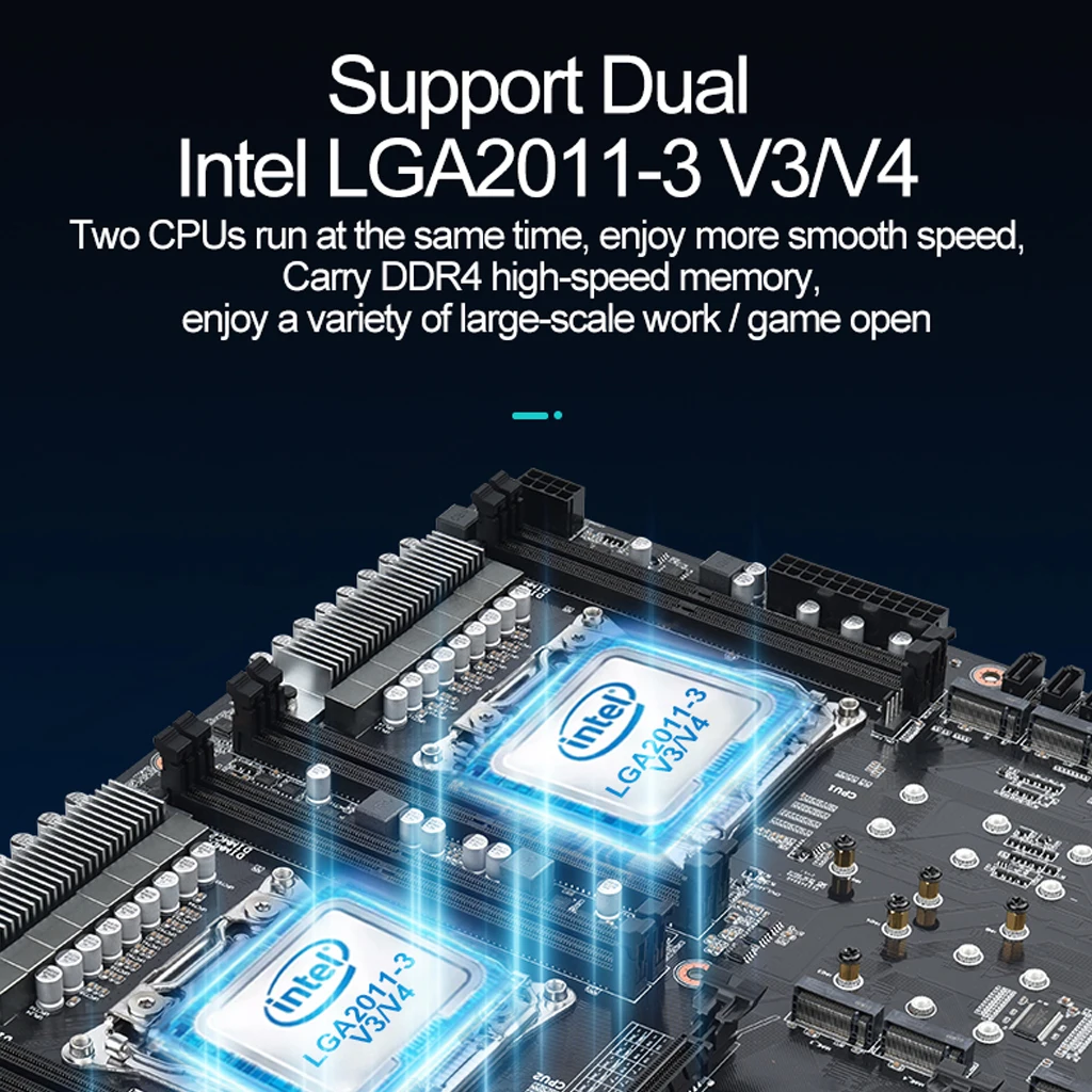 2. Admite Intel dual LGA2011-3 V3/V4: dos CPU se ejecutan al mismo tiempo, disfruta de una velocidad más suave, transporta memoria DDR4 de alta velocidad, disfruta de una variedad de trabajos/juegos a gran escala abiertos.