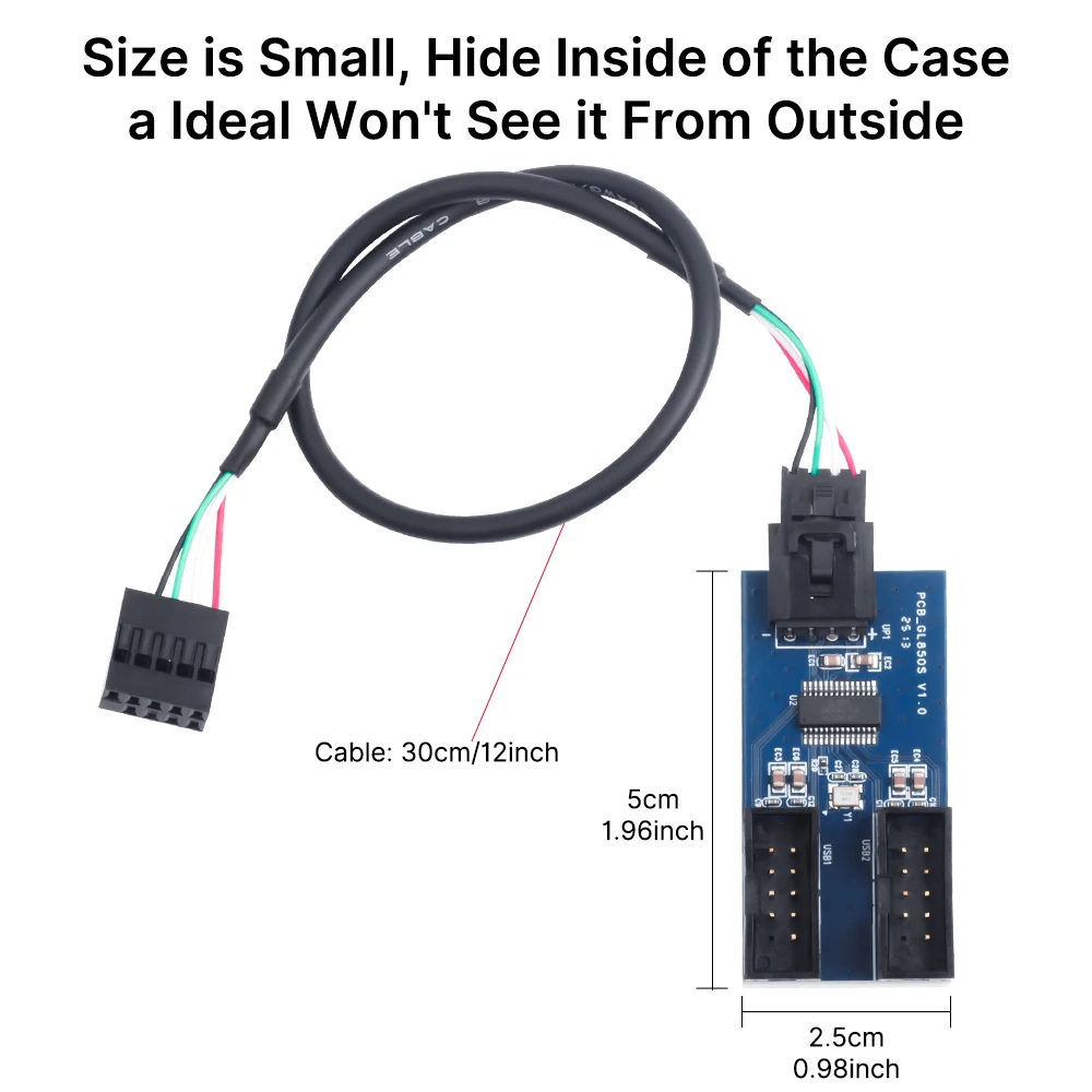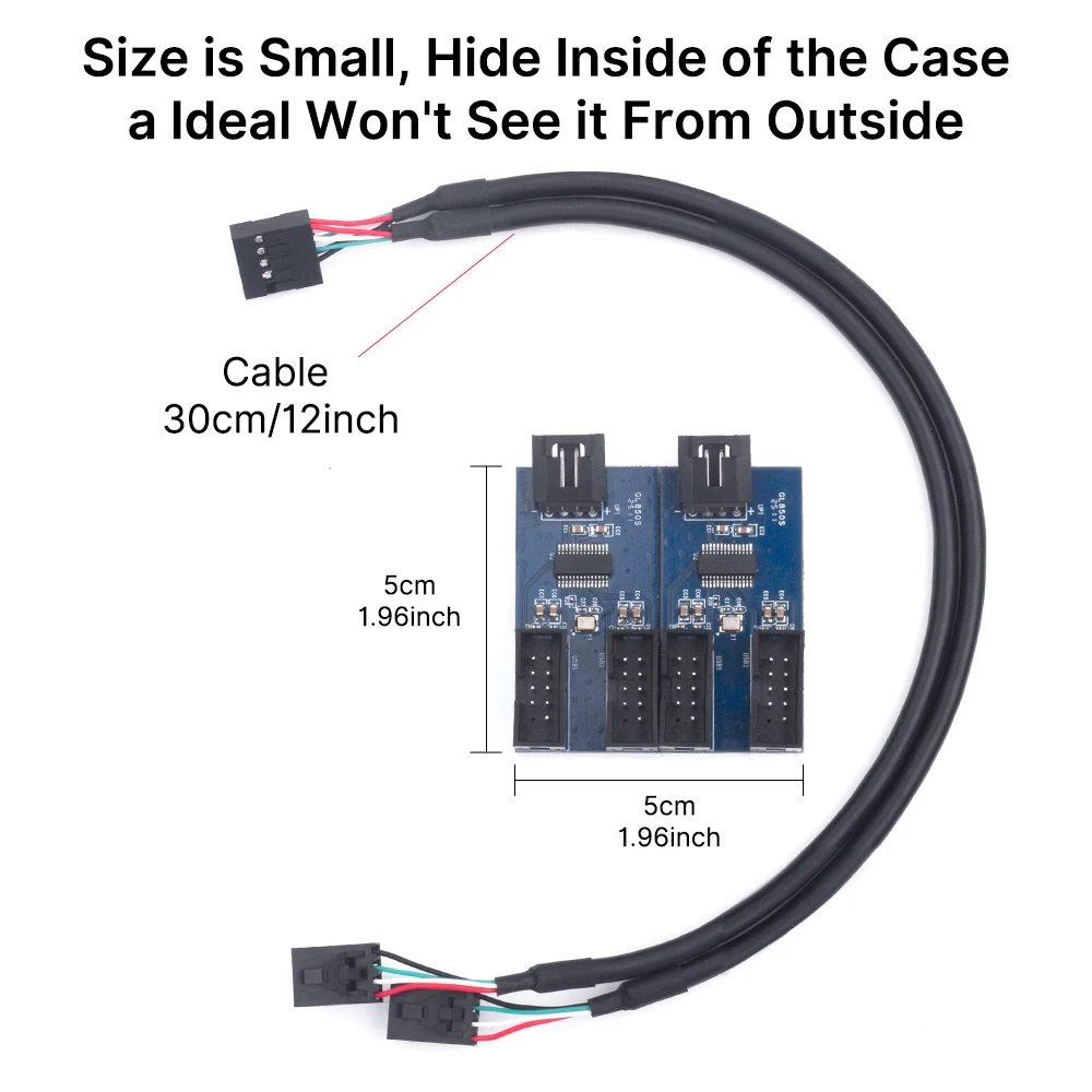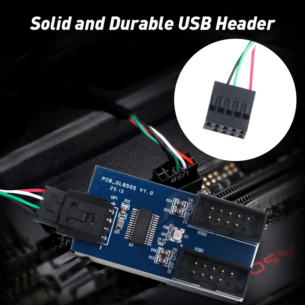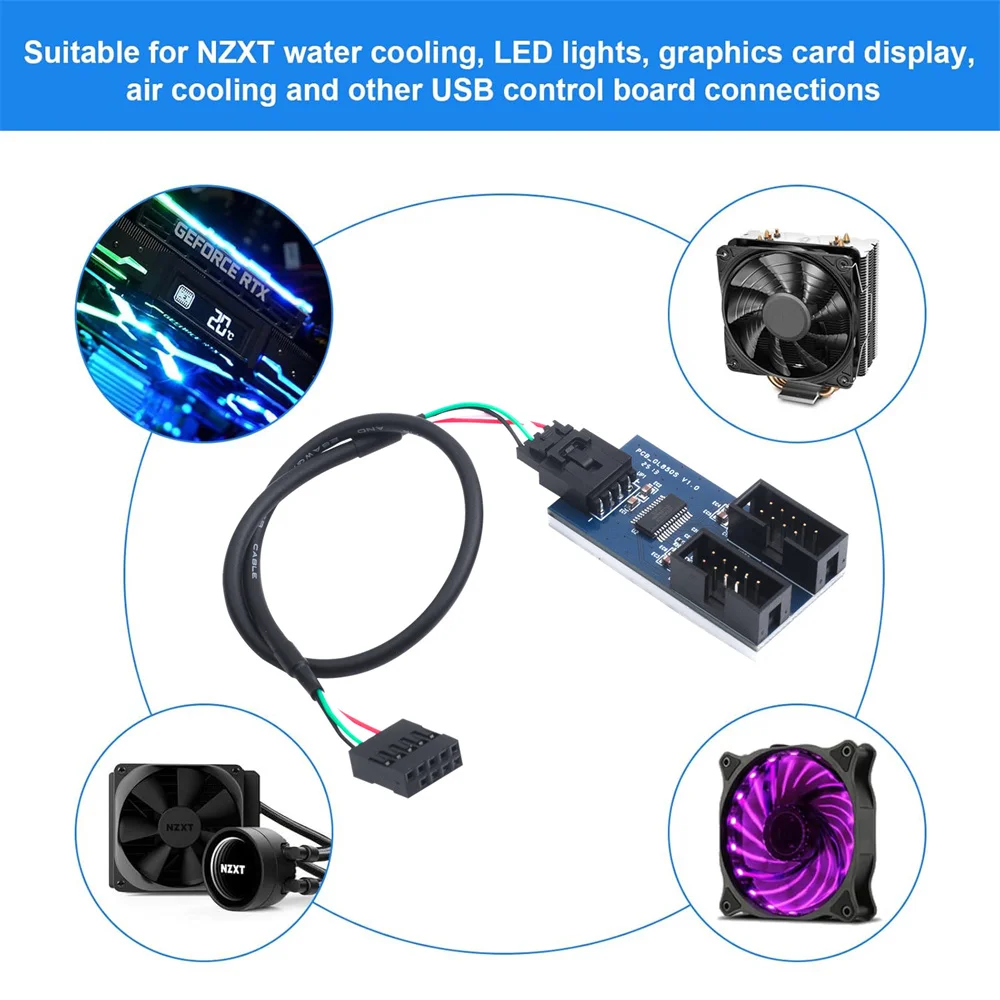 Divisor USB de 9 pines Adecuado para refrigeración por agua, luces LED, refrigeración por aire de pantalla de tarjeta gráfica y otras conexiones de placa de control USB.