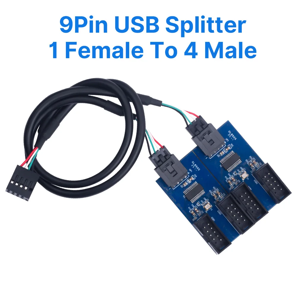 Placa base divisora USB de 9 pines, HUB USB2.0 hembra a macho, 1 puerto a 2/4 puertos, adaptador de Cable extensible para PC, accesorios de 9 pines