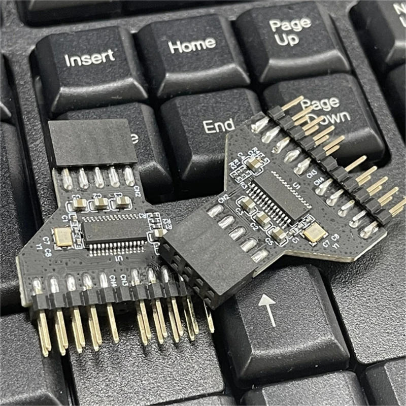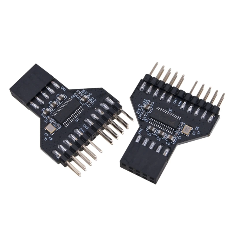 Comprar Placa base divisora USB 2,0 de 9 pines, cabezal USB de 9 pines, adaptador de extensión de 1 a 2, concentrador USB 2,0, conectores para lámpara RGB