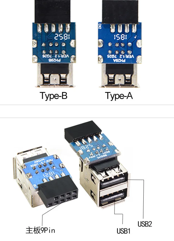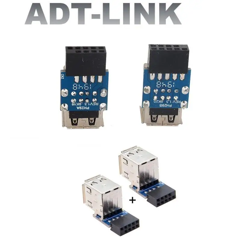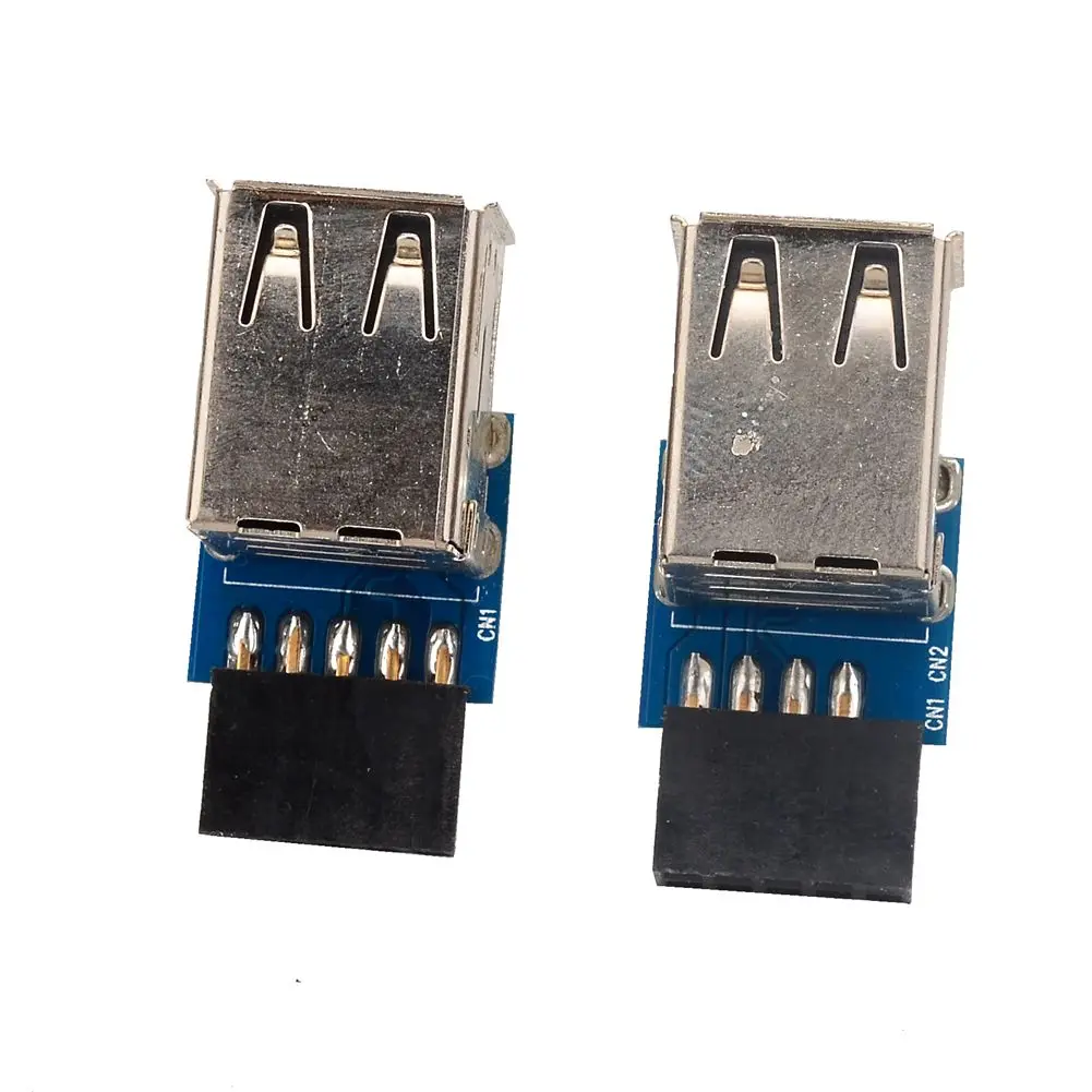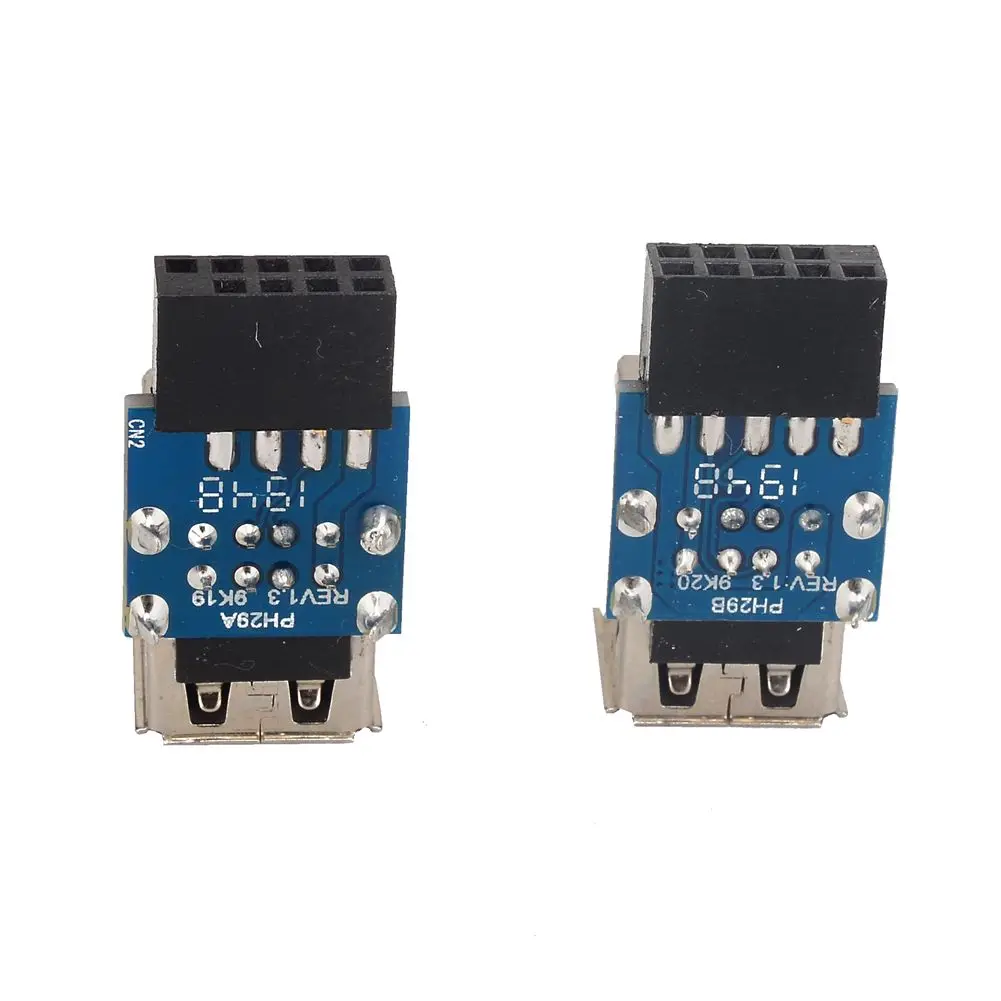 Comprar Placa base de escritorio de 9 pines A 2 puertos, USB 2,0 Dual, Adaptador convertidor hembra de 9 pines, tarjeta elevadora, conectores internos de computadora