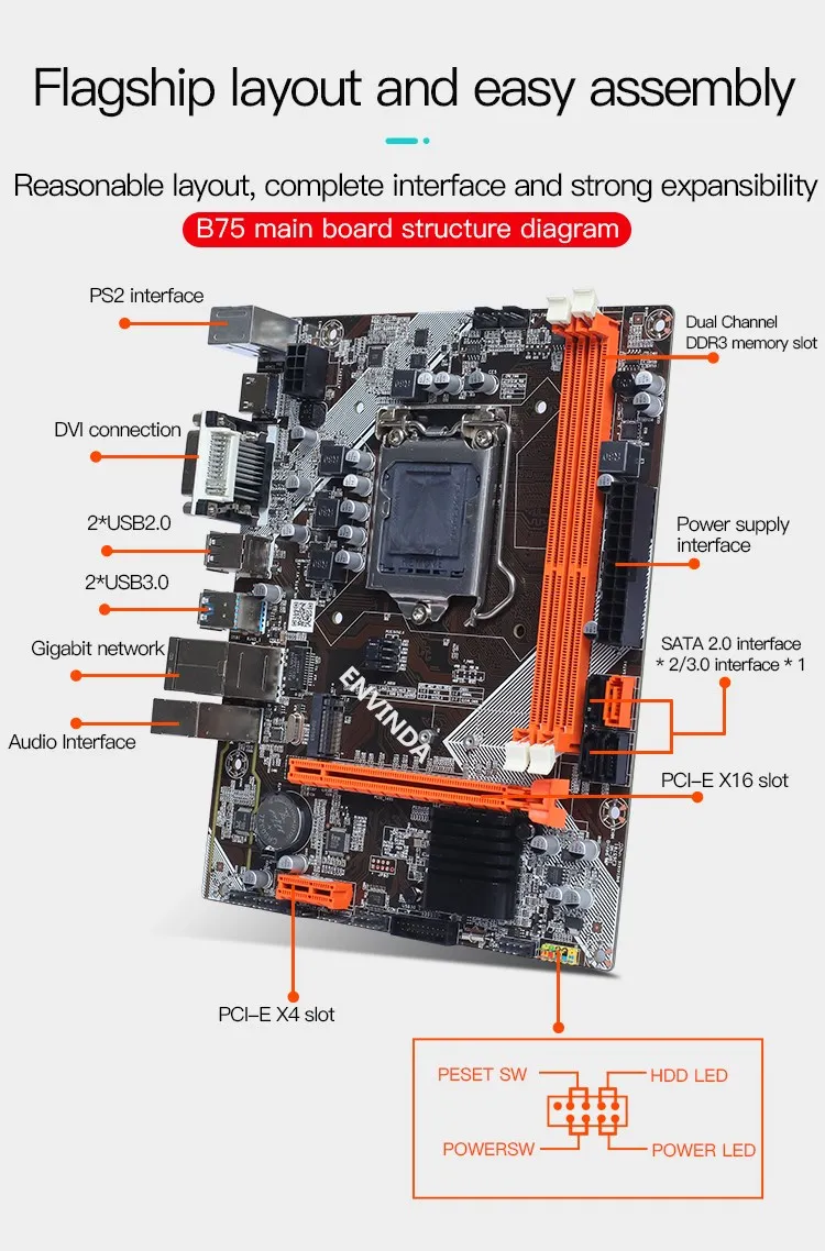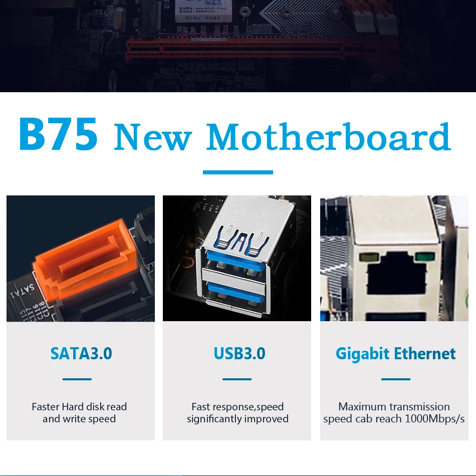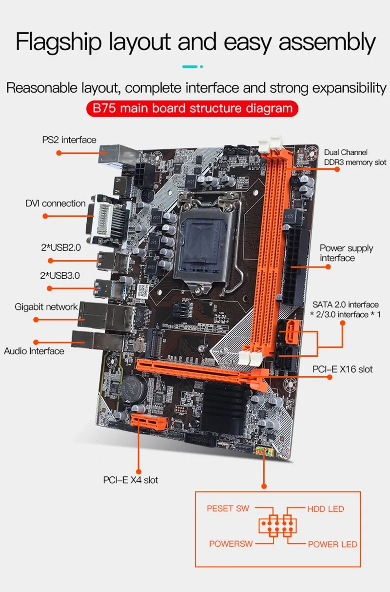 Comprar Placa base de escritorio B75 M.2 LGA1155 para CPU i3, i5, i7, compatible con memoria DDR3, SATA 3,0, USB 3,0, PEI-E, interfaz VGA, Intel Core CPU