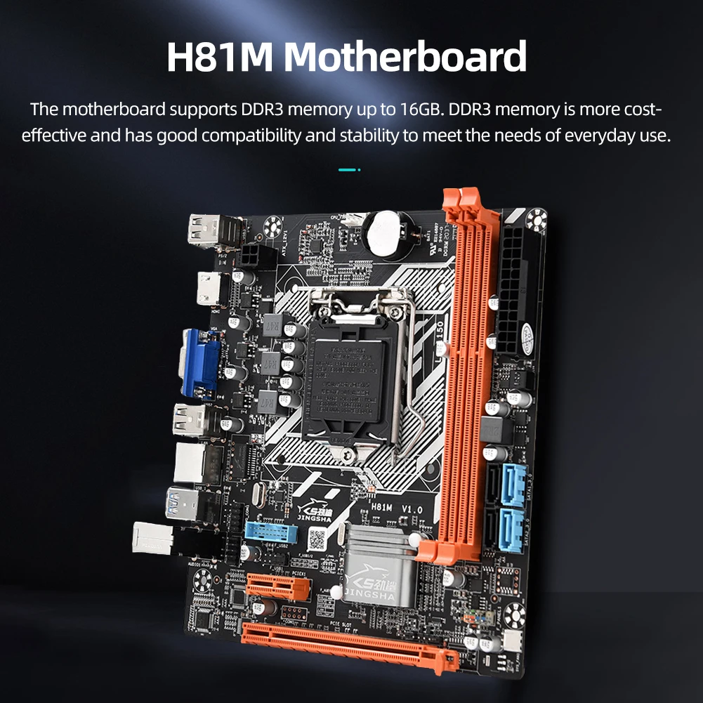 2CH 16GB placa base de escritorio interfaz HD DDR3 memoria SATA3.0 H81M conjunto de placa base Kit de juegos compatible con PCI Express 8X