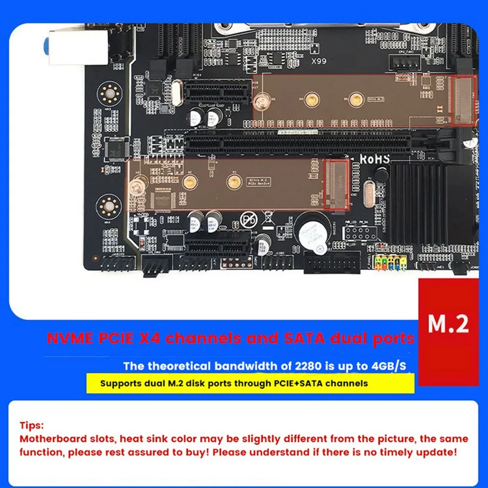 2xM.2 PCIE + SATA cada uno con 1 interfaz NVME de alta velocidad.
