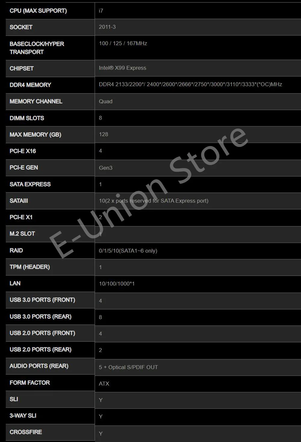 X99S SLI PLUS para Msi LGA2011-3 DDR4 128G M.2 SATA3 USB3.0 PCI-E 3,0 ATX La placa base de escritorio funciona perfectamente Envío rápido de alta calidad