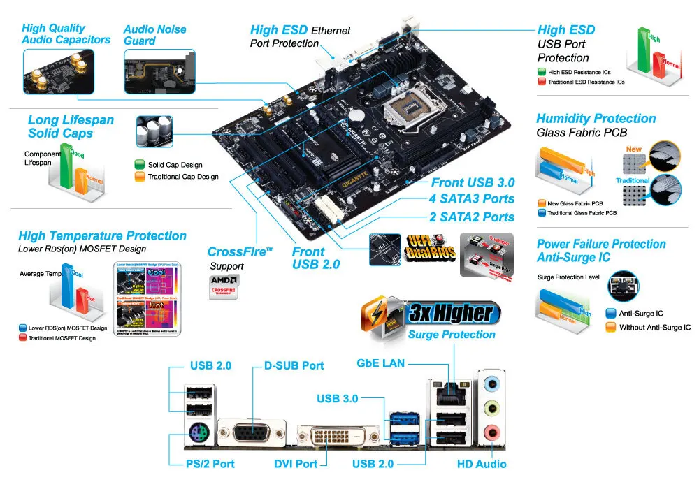 Comprar Placa base GIGABYTE GA-B85-D3VLGA 1150 DDR3 32GB Placa base Intel B85 compatible con Core 4170 4370 4130 4770 4570 4590 4790 cpu ATX