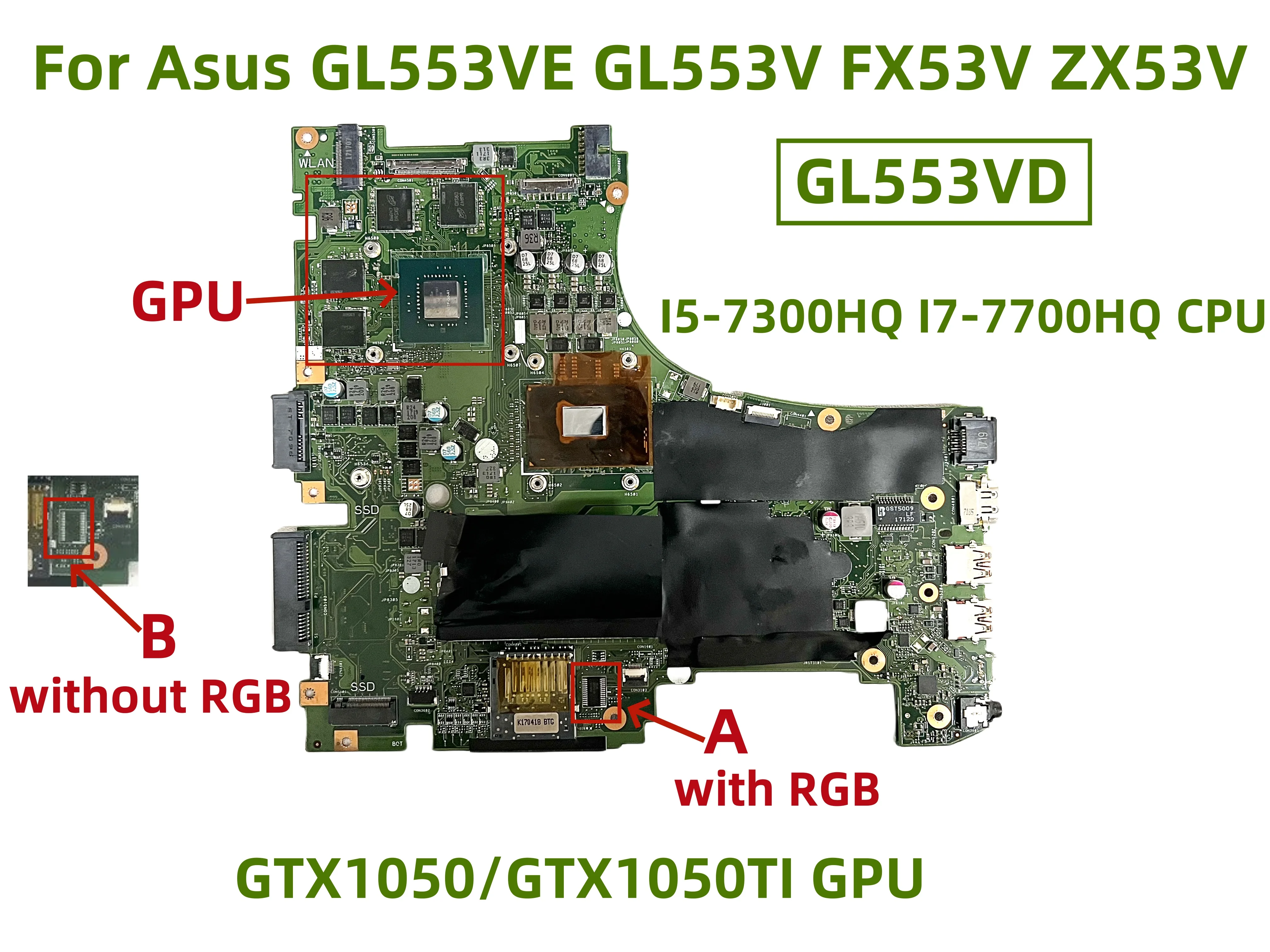 Comprar Placa base GL553VD para portátil Asus GL553VE GL553V FX53V ZX53V con I5-7300HQ I7-7700HQ CPU GTX1050/GTX1050TI GPU 100% prueba ok