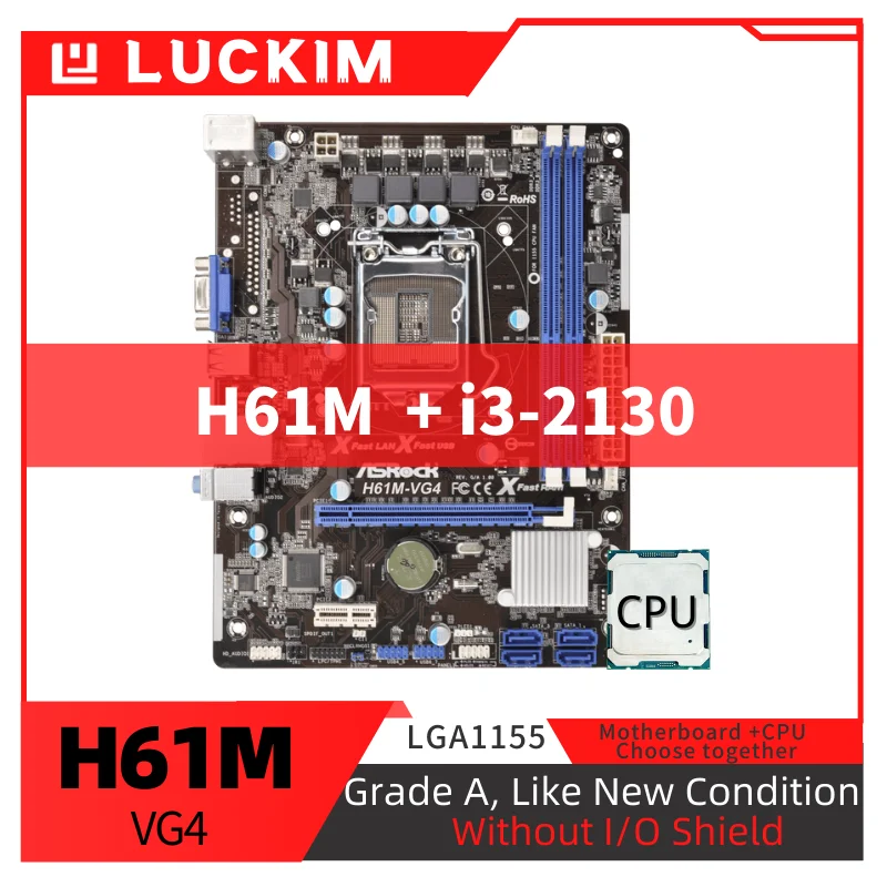 Comprar Placa base H61M-VG4 reacondicionada LGA1155, Kit de i3-2130 con procesador, pc