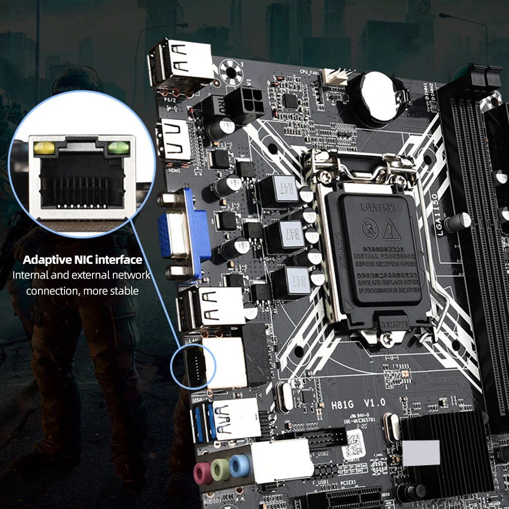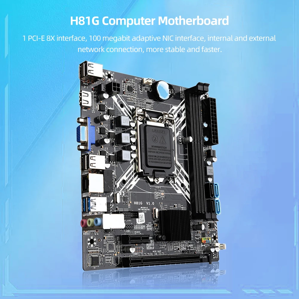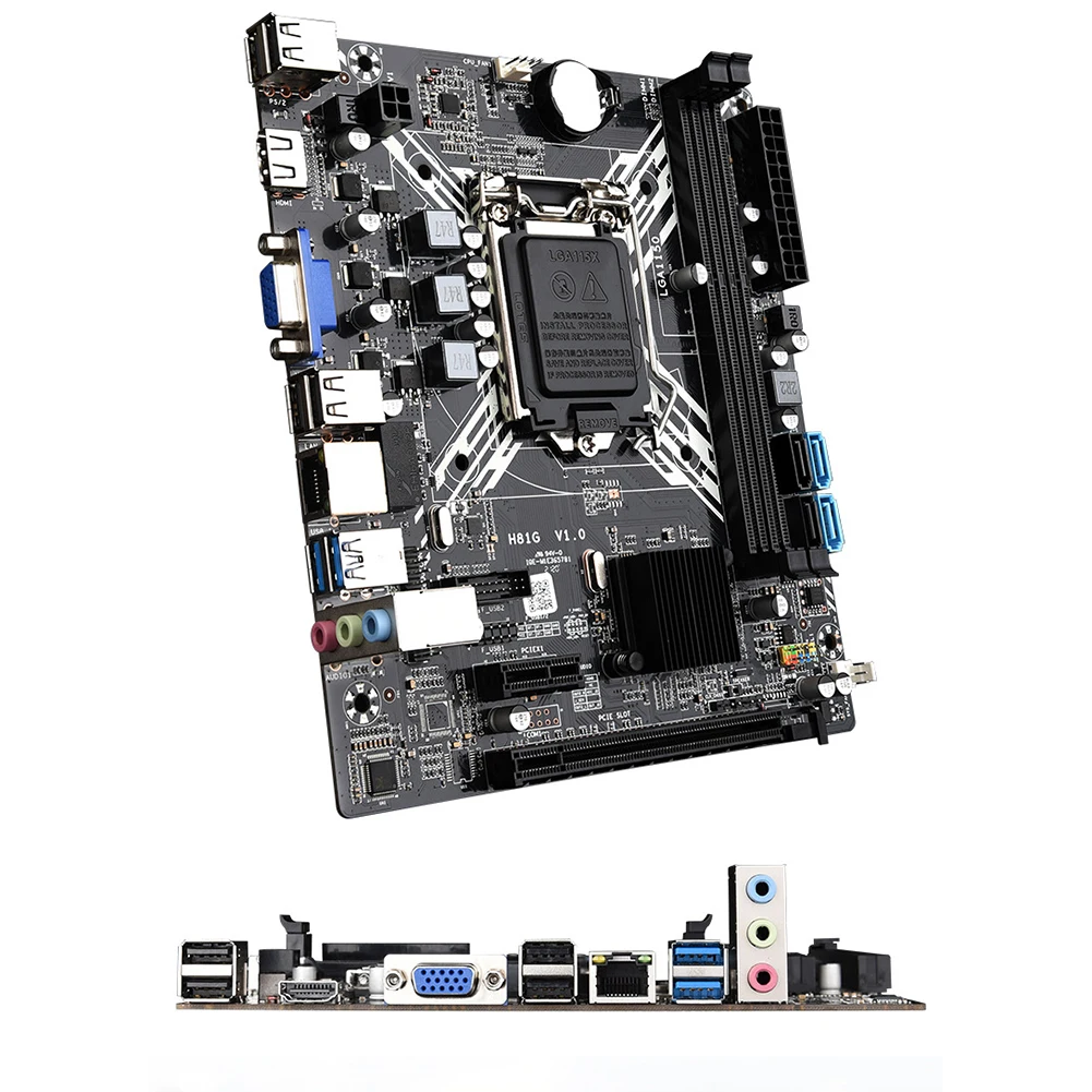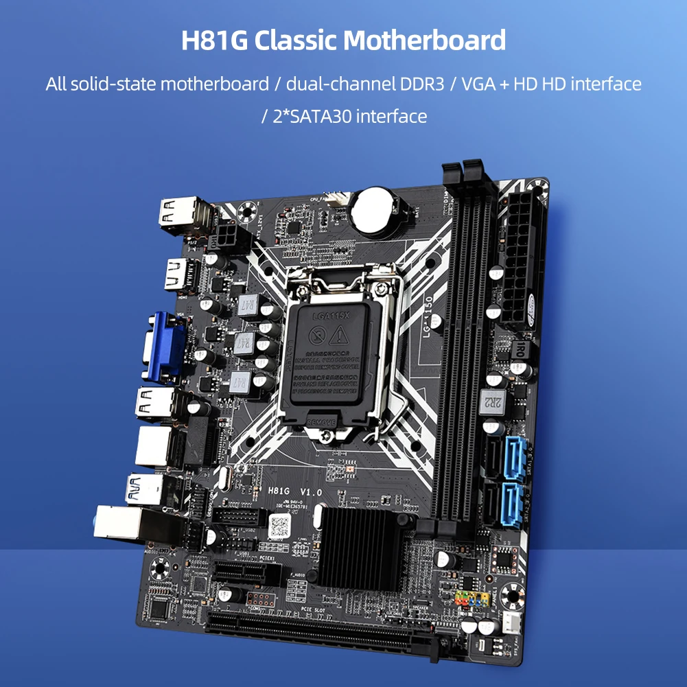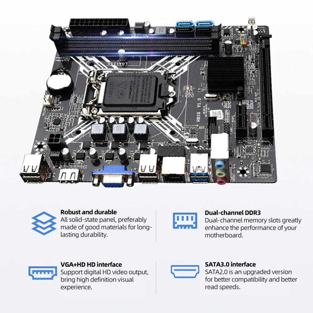 1 kit combinado de placa base1 cable de datos SATA1 deflectorComprar Placa Base H81 LGA1150 Compatible con DDR3, SATA3.0, USB3.0, PCI-E, placa Base 8x, canales duales, Memoria VGA, HD, Compatible con Kit de escritorio