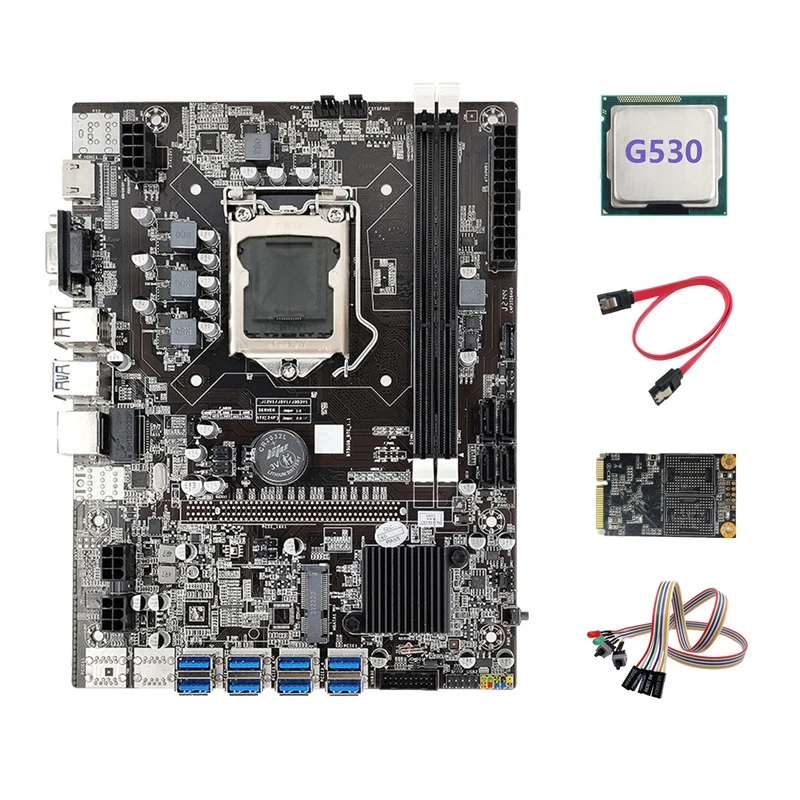 Comprar Placa base HOT-B75 BTC Mining 8xusb + MSATA SSD 128G + G530 CPU + Cable SATA + Cable de interruptor con luz LGA1155