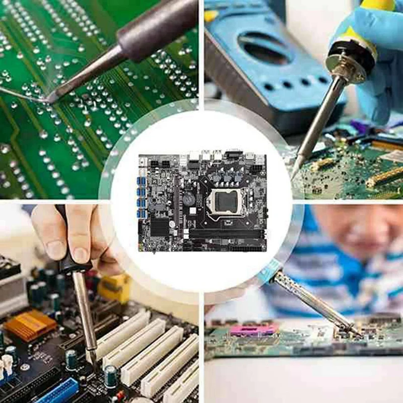 La placa base USB-BTC B75 adopta condensadores totalmente sólidos para hacer la placa base más estable Compatible con CPU LGA1155, utiliza el chipset B75, reproduce completamente el rendimiento de la CPU. Compatible con CPU de segunda y tercera generación Inicio Rápido, carga y transferencia de archivos. Bajo consumo de energía, silencioso, fiable y duradero Material duradero: Este producto está hecho de material de alta calidad, duradero, largo tiempo de servicio, firme y estable en uso. La placa base es adecuada para la industria minera debido a su bajo precio y sus ricas interfaces de expansión.