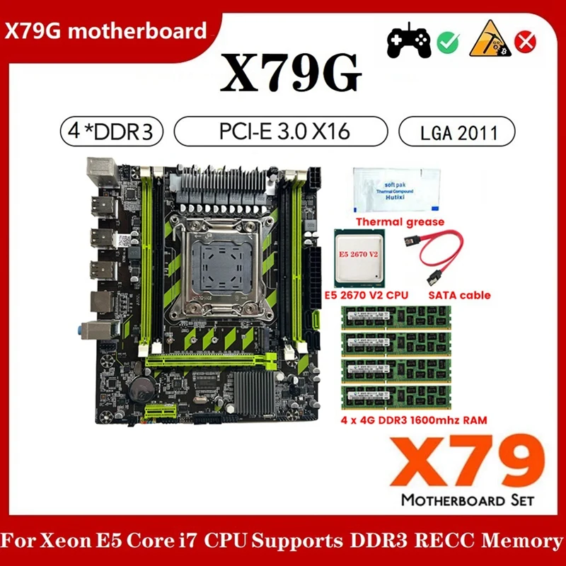 Contenido del paquete: 1 x X79G placa base 1 x E5 2670 V2 CPU 4x4G DDR3 1600mhz RAM 1 x cable SATA 1 x grasa térmica