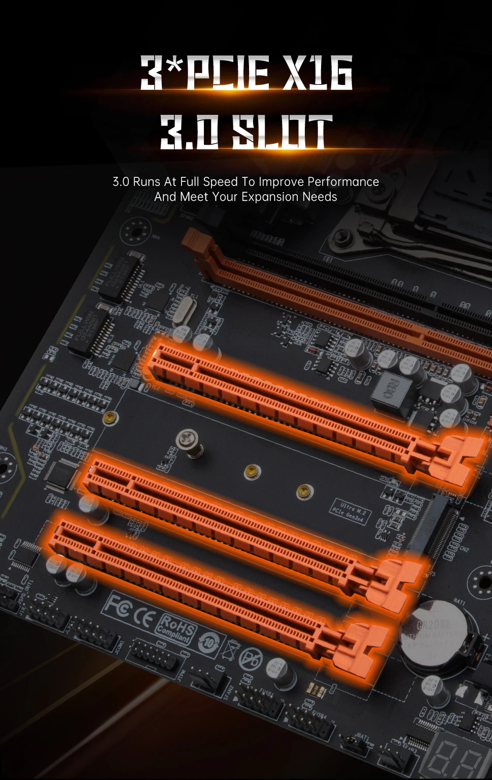 Ranuras de expansión: 3 * PCI Express3.0X16, 1 * M.2 22110 NVME PCIE x4 3,0 32 Gb/s, 1 * M.2 2280 PCIE X4 3.0@NGFF SSATA 3,0 6 GB/S (se utilizará una señal de ssata NGFF)