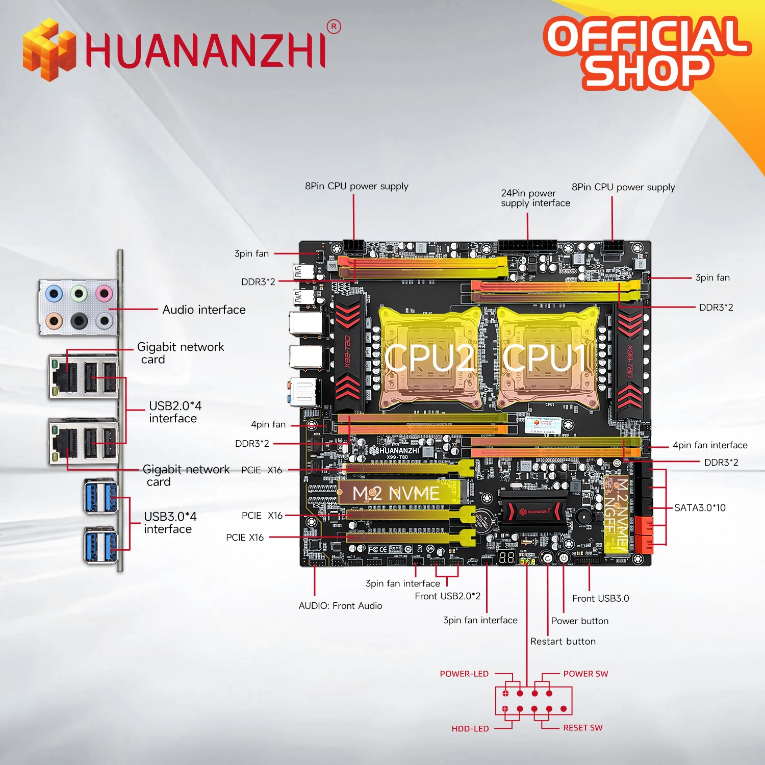 Comprar Placa base HUANANZHI X99 T8D LGA 2011-3 XEON X99 compatible con CPU Dual Intel E5 2696 2678 2676 2666 V3 DDR3 NO ECC RECC M.2 NVME